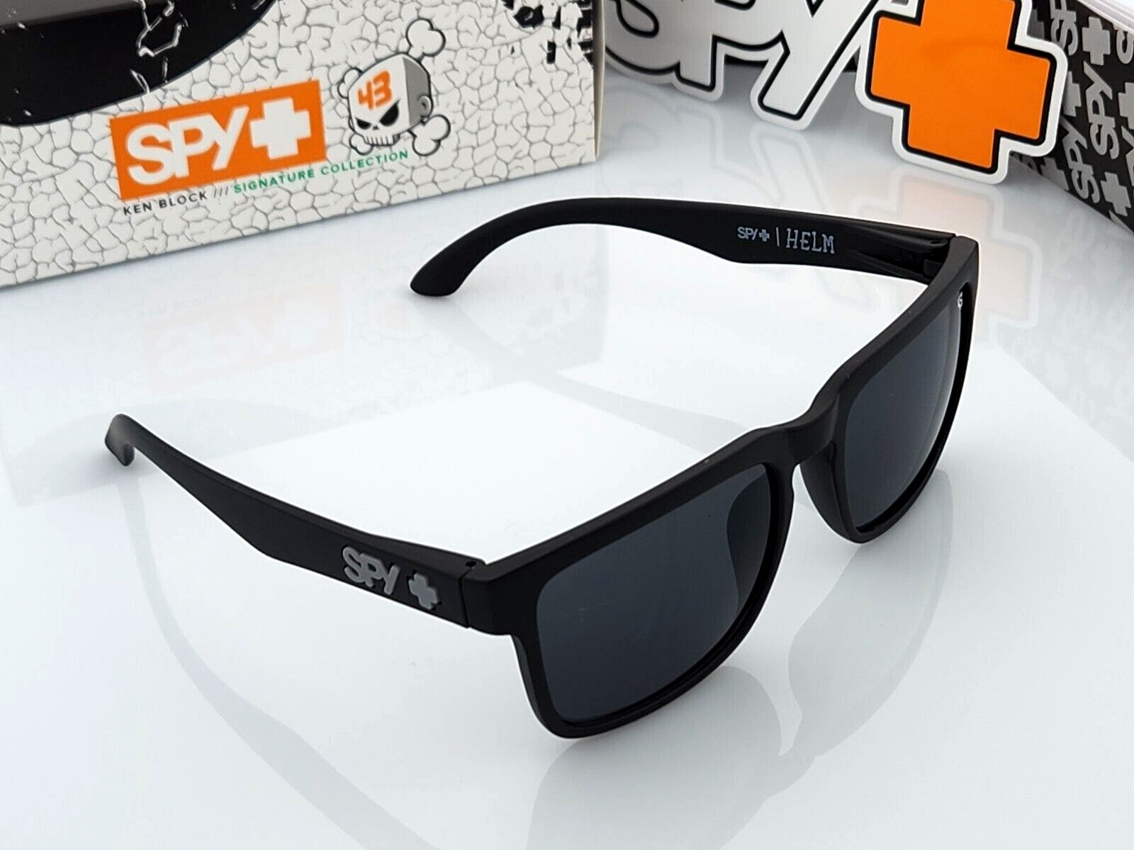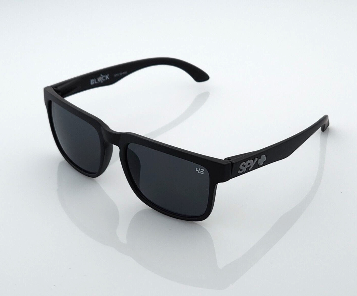 Spy Helm Promo Sunglasses Matte Black Dark Smoke Tint Lens Gray Logo NIB S7