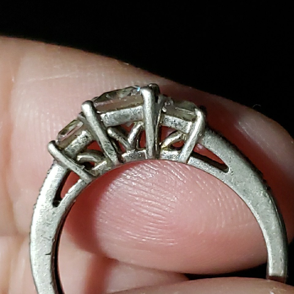как выглядит 925 Sterling Silver Engagement Ring With 3 Square Cut CZ stones Sz 6.5 фото