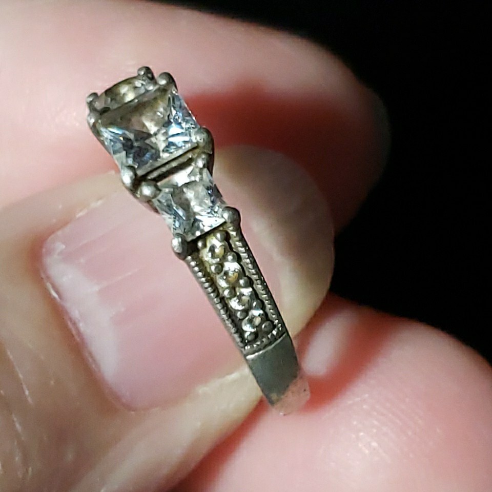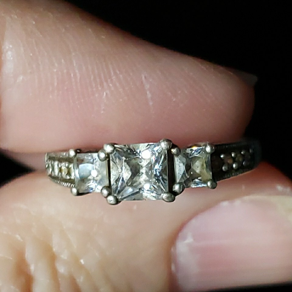 925 Sterling Silver Engagement Ring With 3 Square Cut CZ stones Sz 6.5