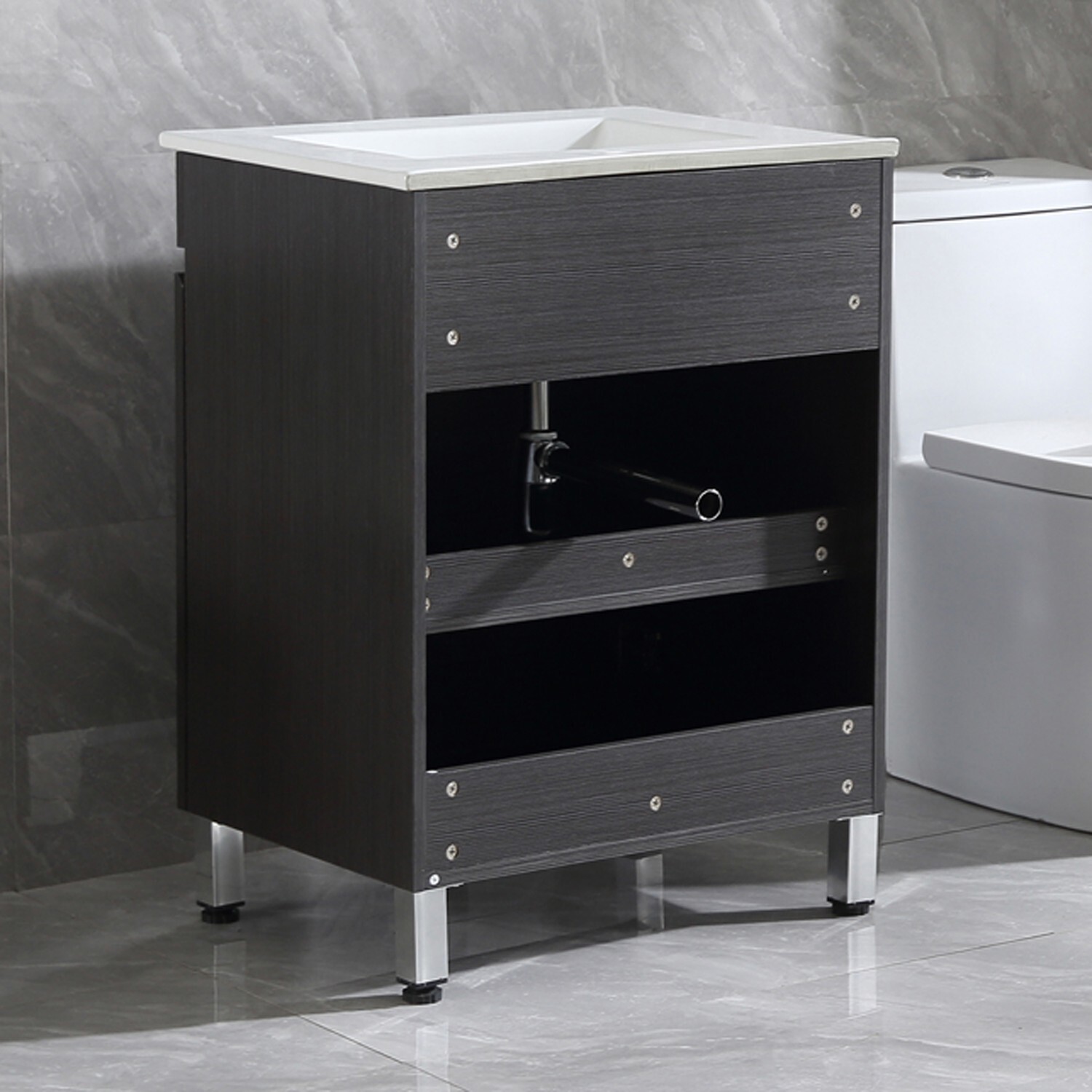 24 Single Bathroom Vanity Wood Grain Cabinet with Ceramic Sink Faucet Combo Set