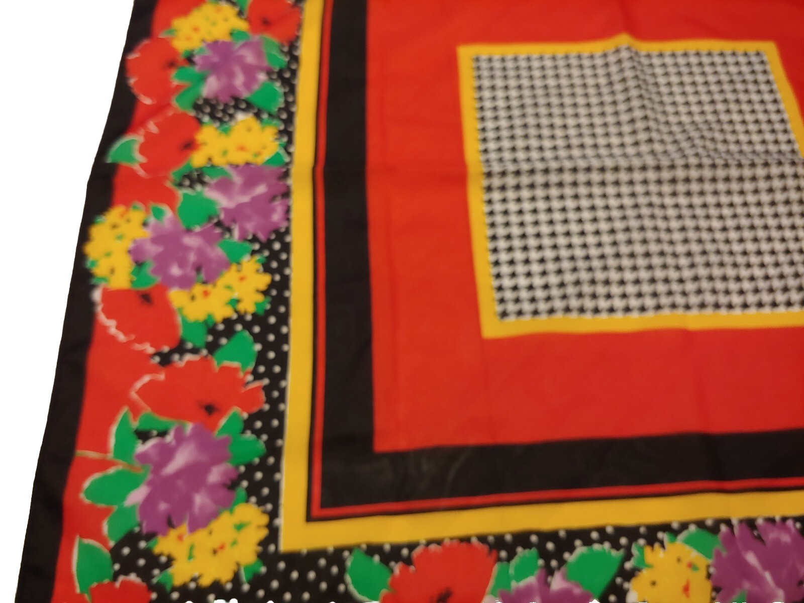 как выглядит Vtg. Floral, Houndstooth Design Scarf, Made In Italy, 100 Polyester, 29x30 фото