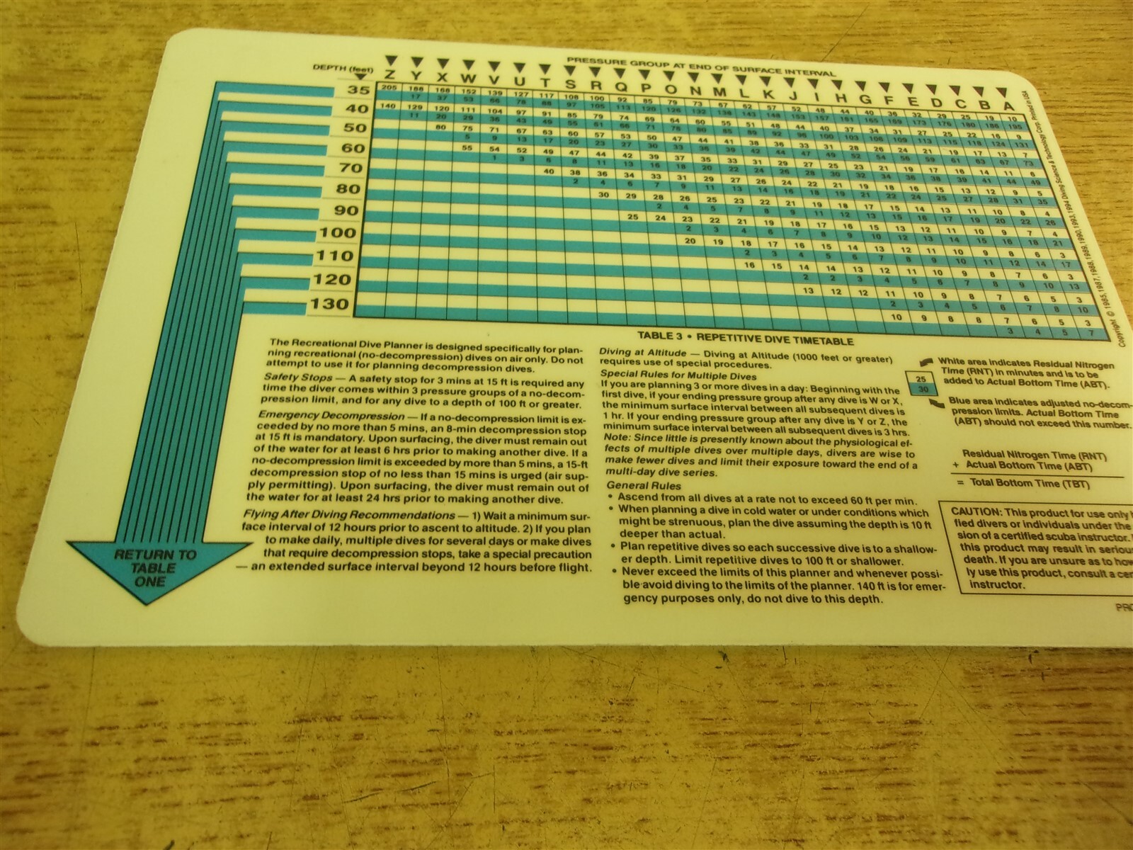как выглядит Padi Recreational Dive Planner Vintage 1985 1987 1988 1989 1990 1994 "O" фото