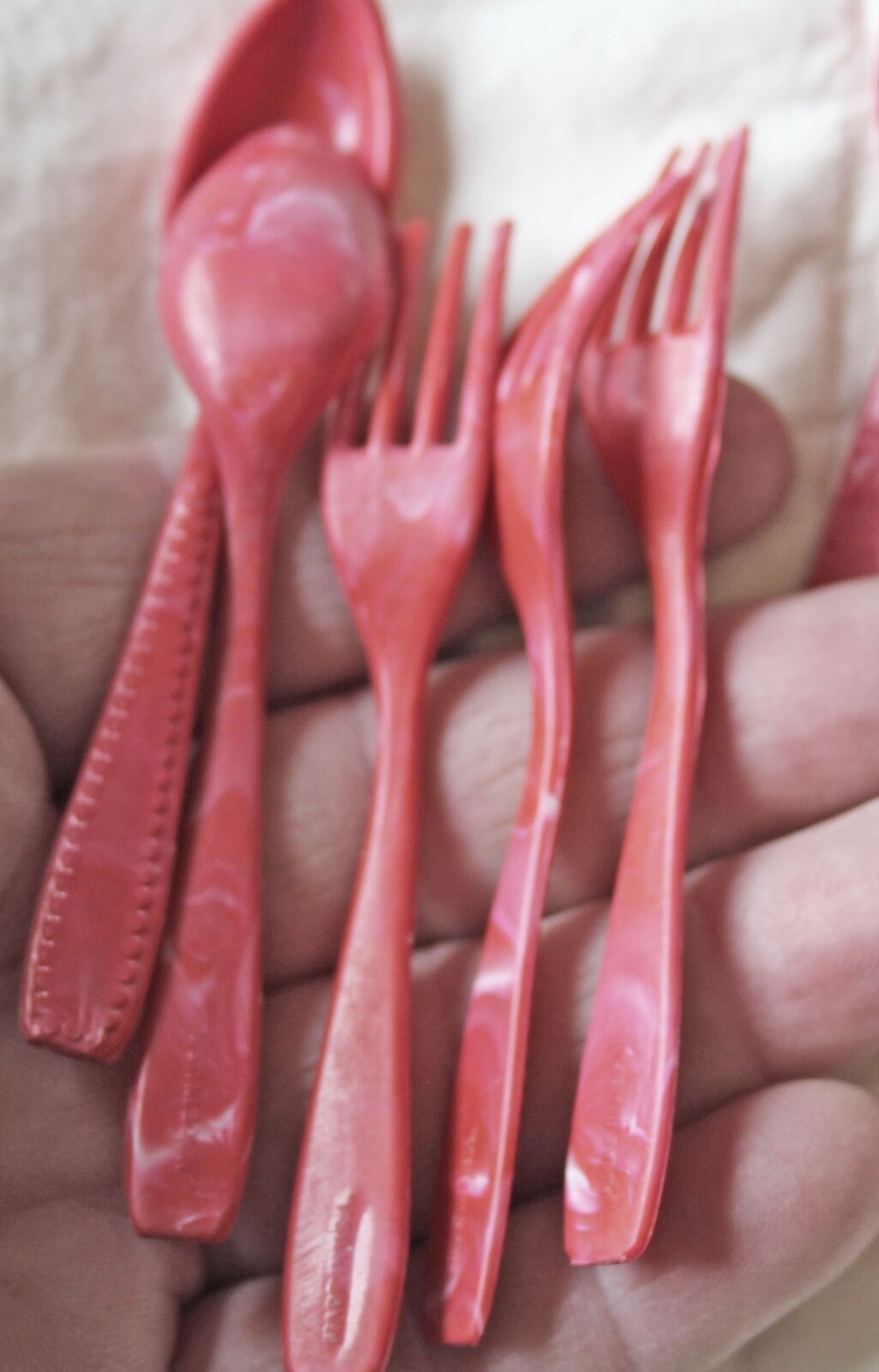 Vintage Childs Utensils Knives Forks Spoons Play Set Early Plastic