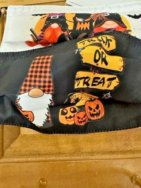 Set of 2 Halloween Face Masks Pleated Gnomes Trick or Treat