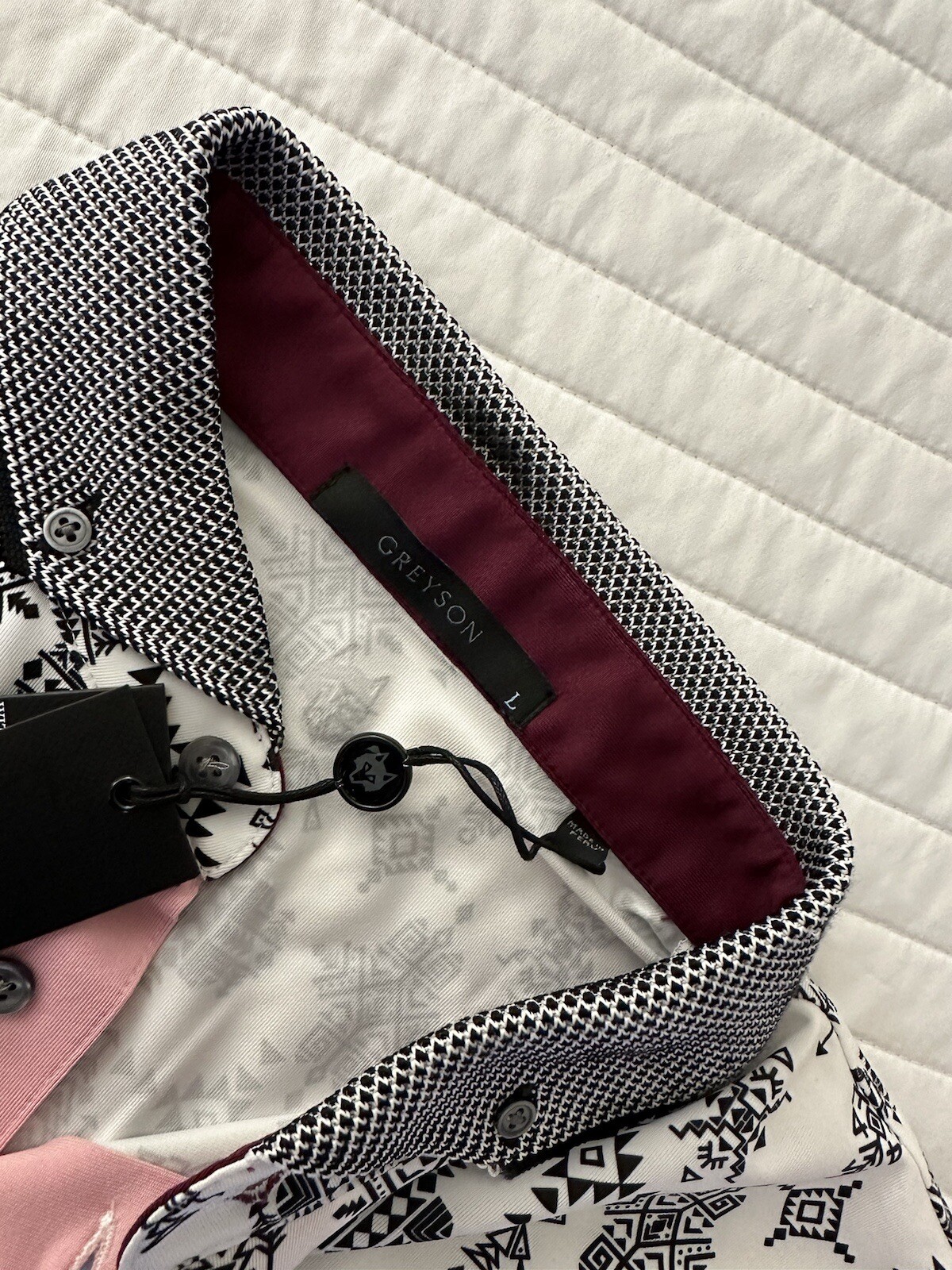 как выглядит Greyson Golf SS White Black Polo Shirt Size Large NWT Spirit World фото