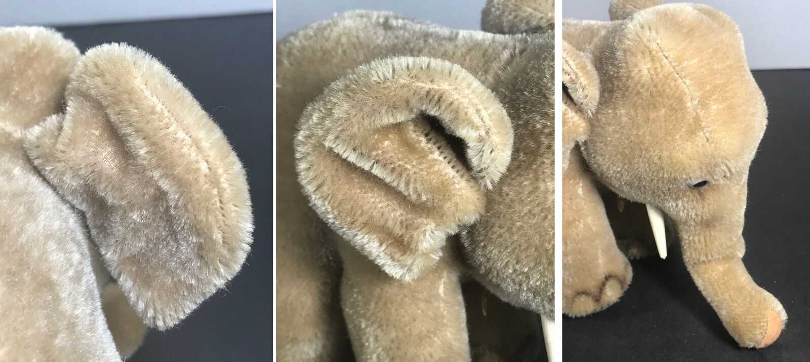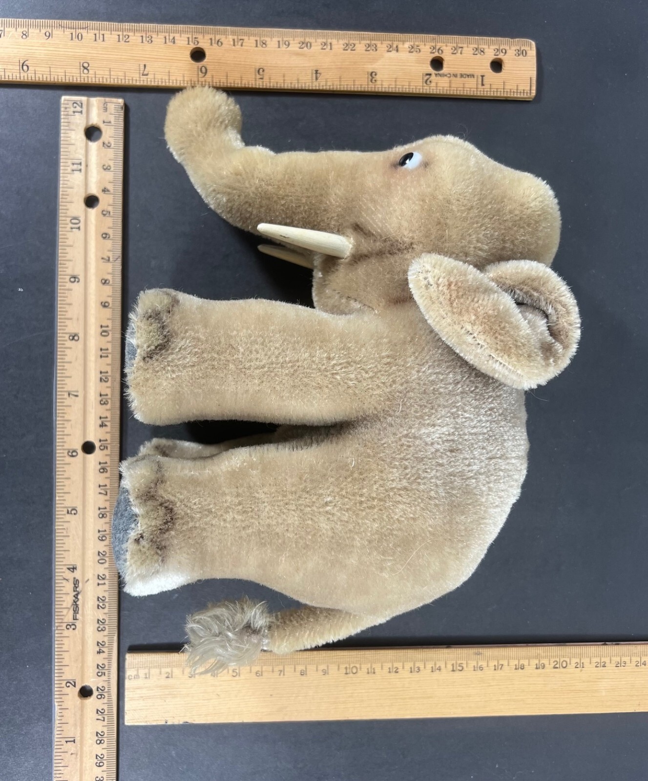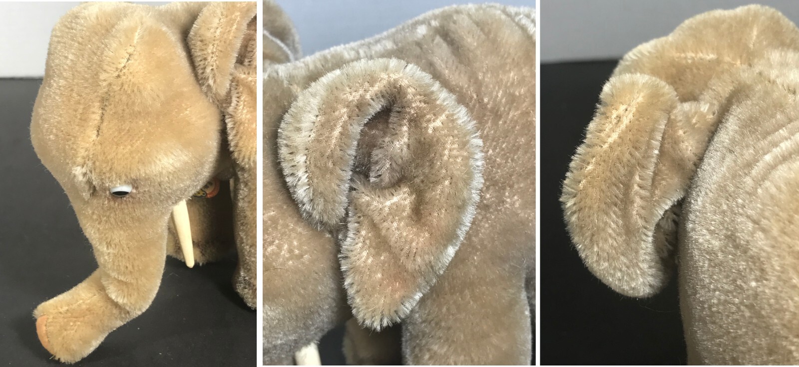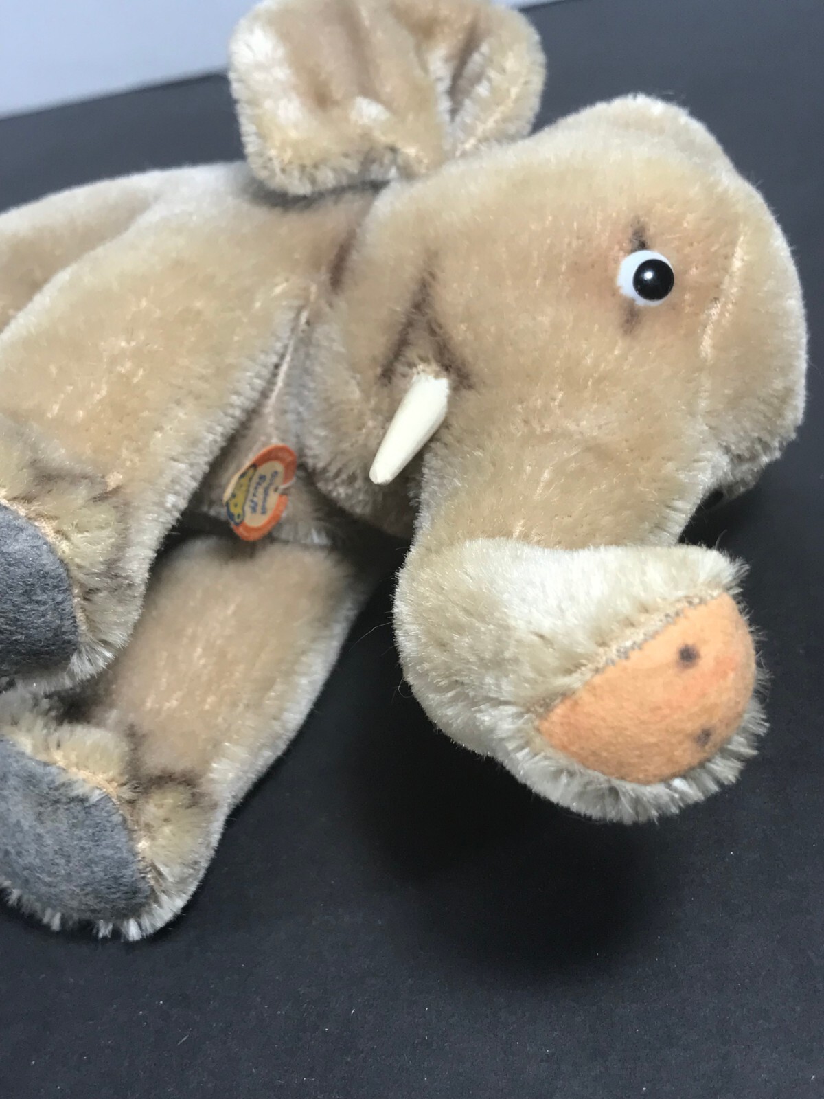 STEIFF Elephant 1950s Mohair Plush 17cm with ID Hang Tag - No Button No Blanket