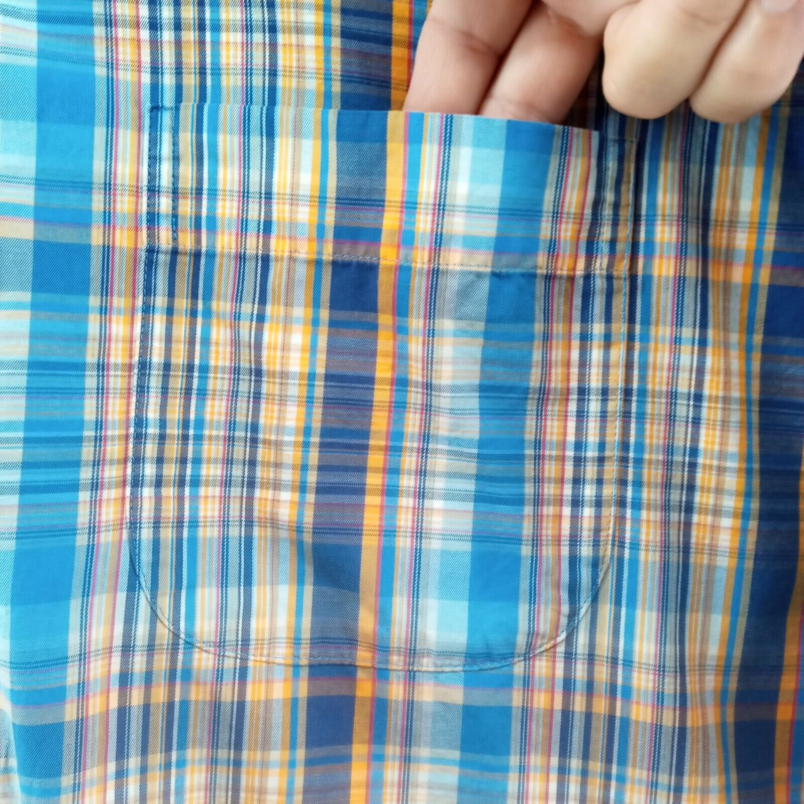 как выглядит Peter Millar Shirt Mens XL Blue Orange Colorful Plaid Long Sleeve Button Up фото