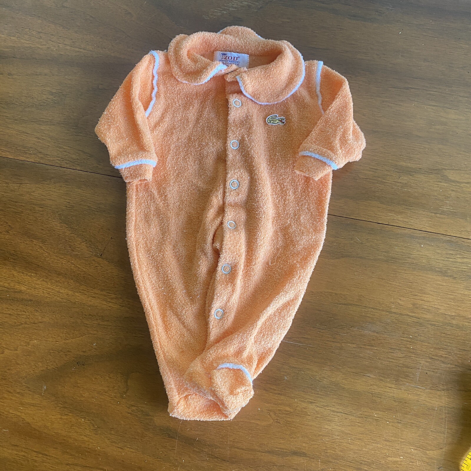 как выглядит Vintage 80s Izod Lacoste Snap Up One Pcs Sleeper Pajamas Newborn Peach фото