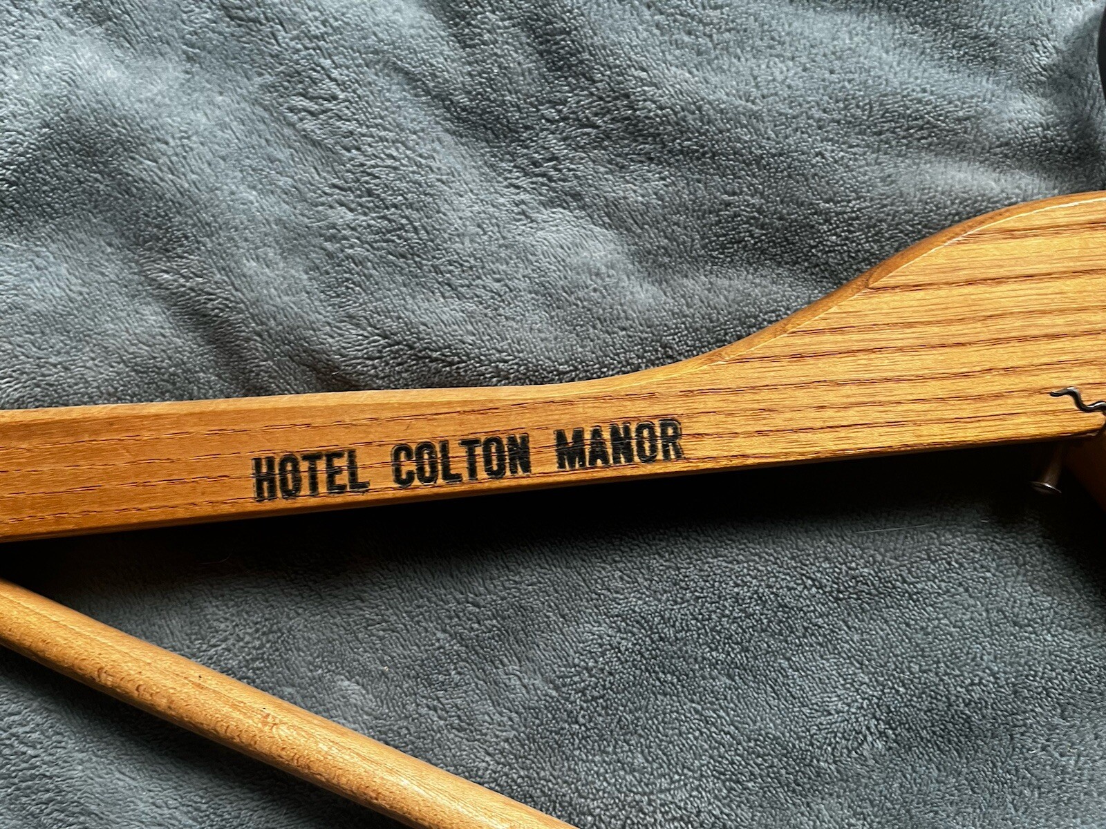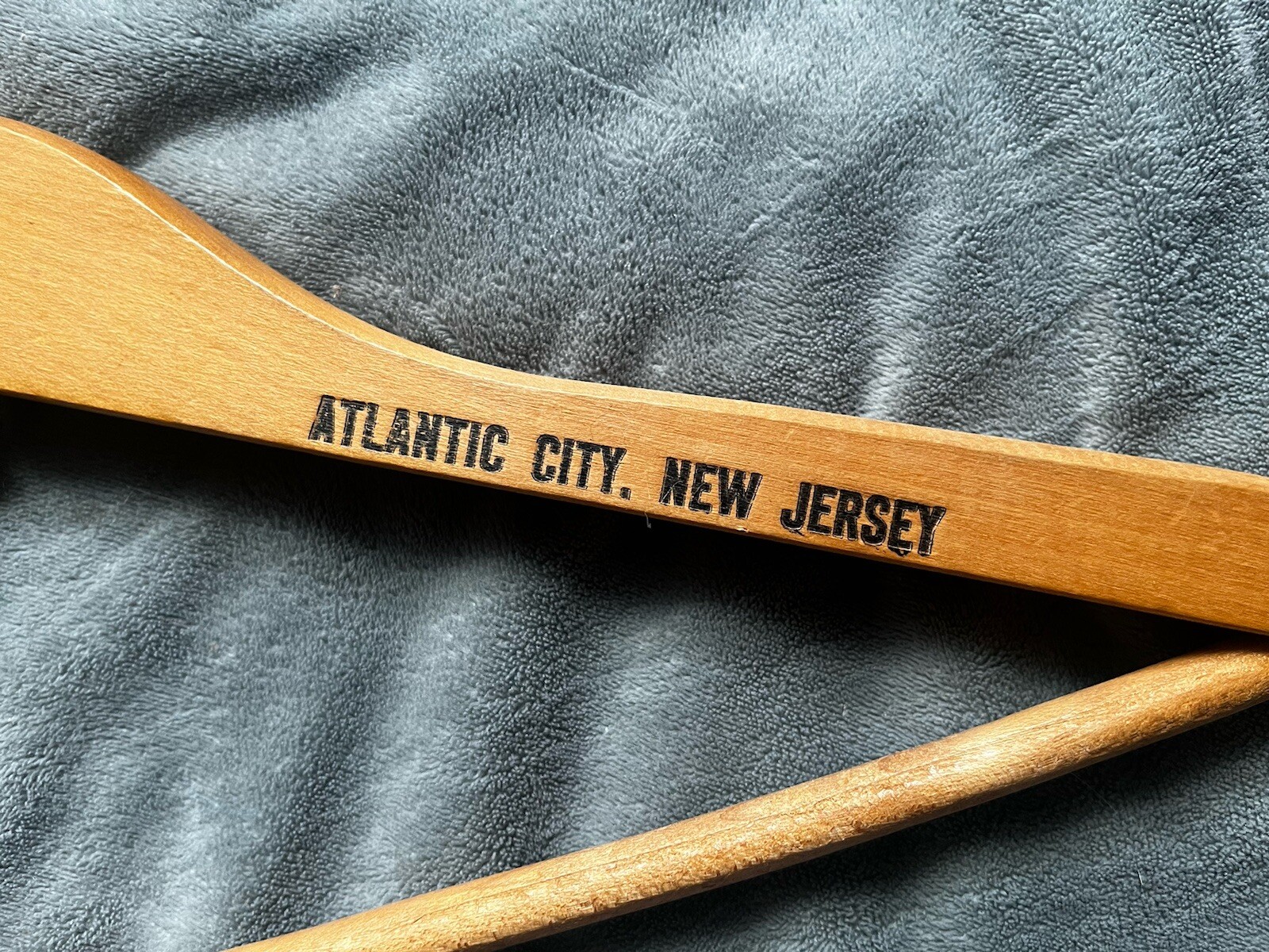 VINTAGE Wood Clothes Hanger Advertising Hotel Colton Manor Atlantic City NJ