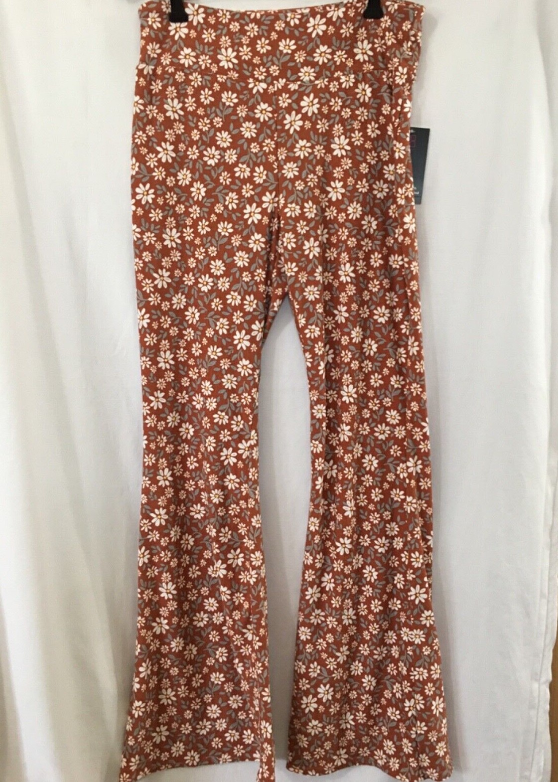 New No Boundaries Brown Floral Knit Flare Pants Juniors Women Small,Large