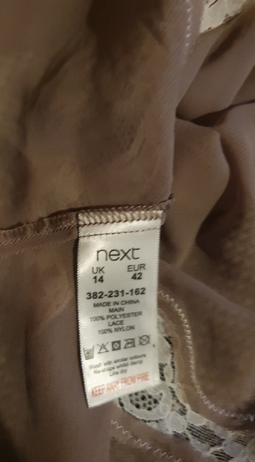 как выглядит New NEXT Brown Mix Lace Chemise Dress Size UK 14 - RRP 42 фото