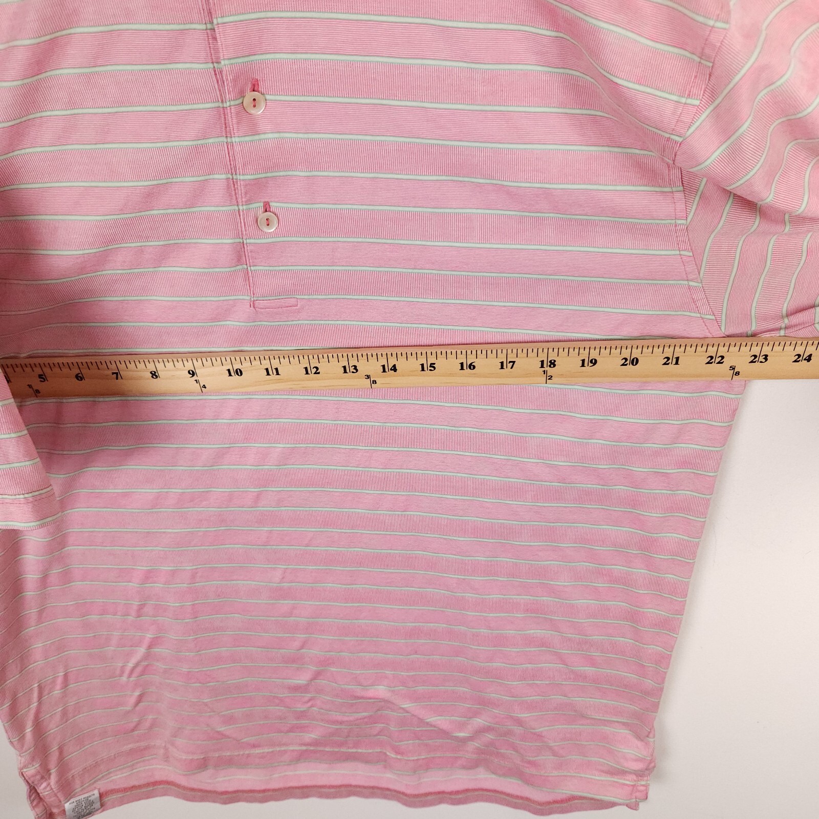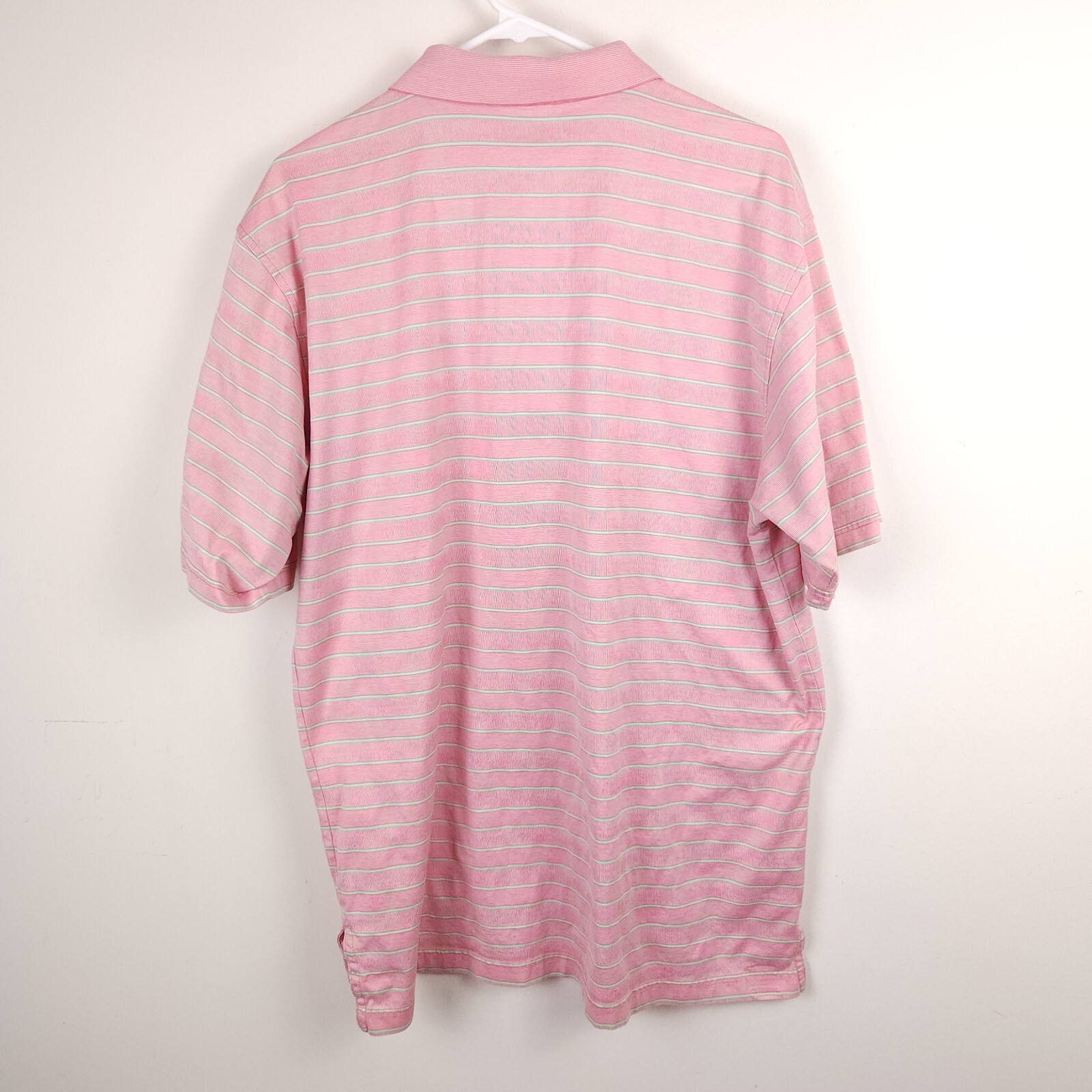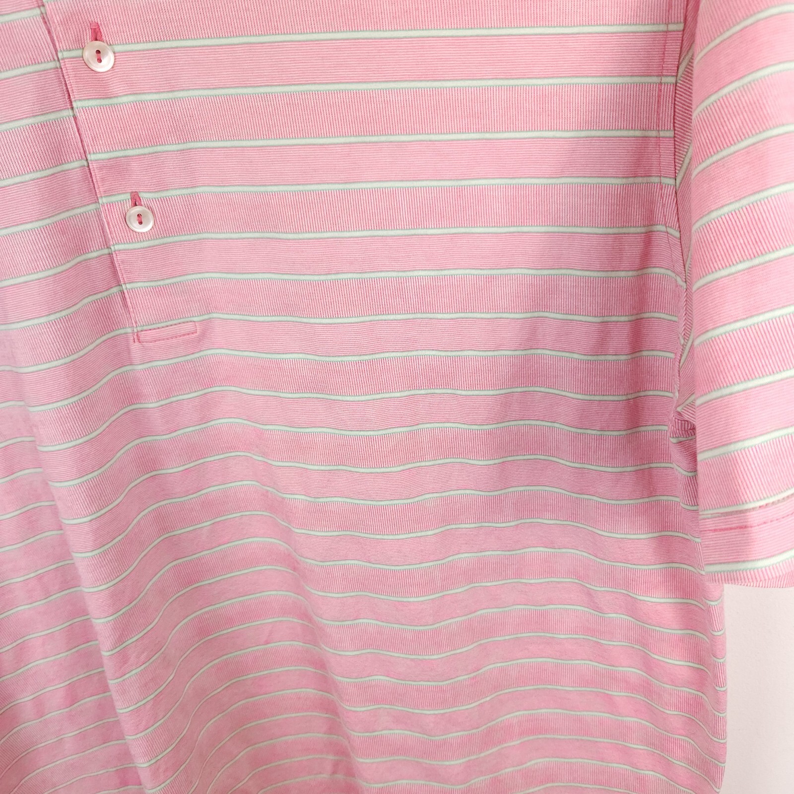 как выглядит Peter Millar Polo Shirt Men Large Pink Green Striped Cotton Short Sleeve фото
