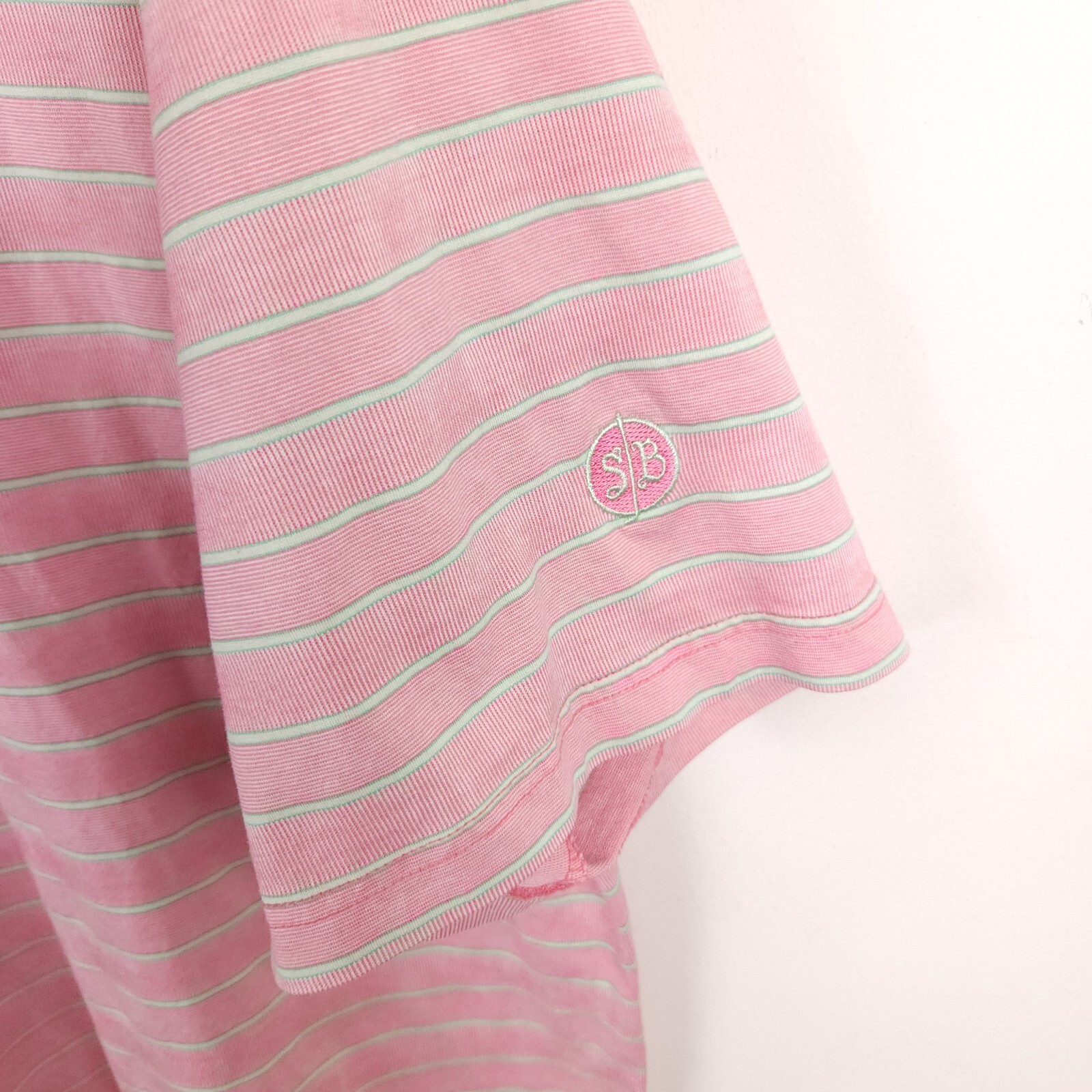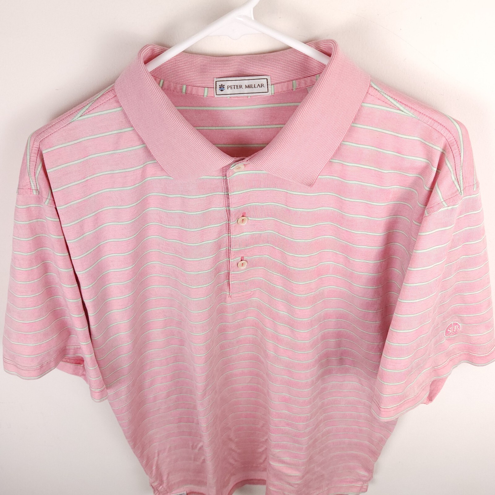 Peter Millar Polo Shirt Men Large Pink Green Striped Cotton Short Sleeve
