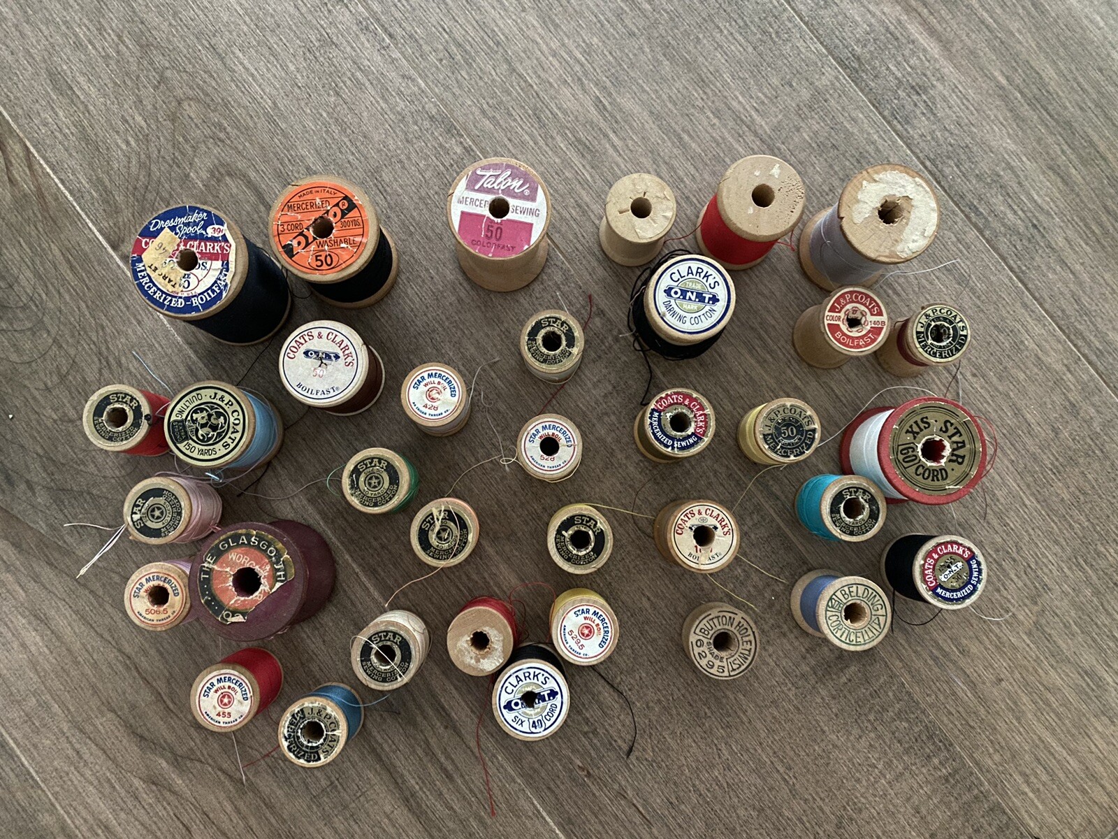 • Vintage Coats Clark s, Corticelli, Star, Wood Spools of Thread Lot of 35