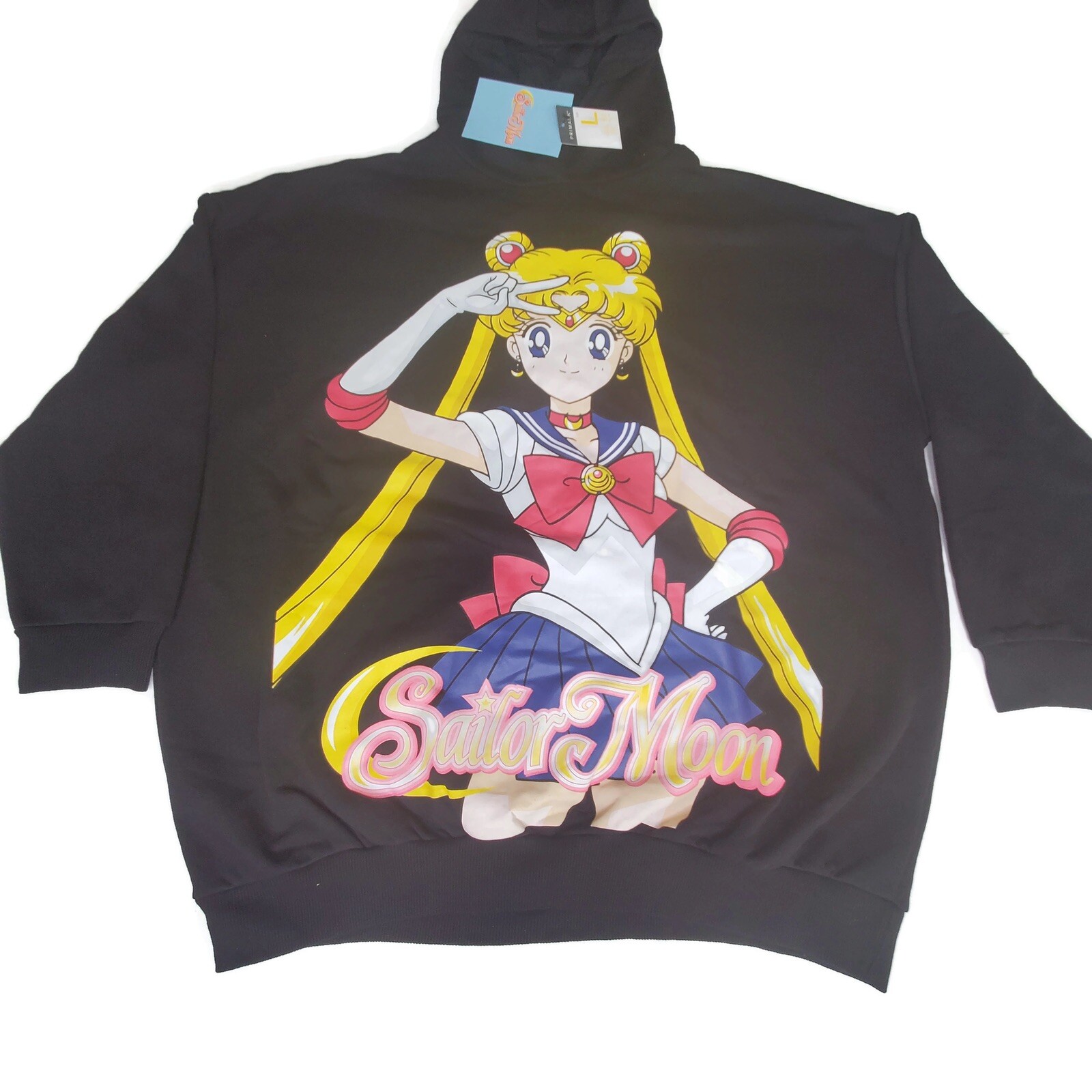 как выглядит Primark Sailor Moon Hoodie Large Black Women Anime Pretty Guardians Oversized Lg фото