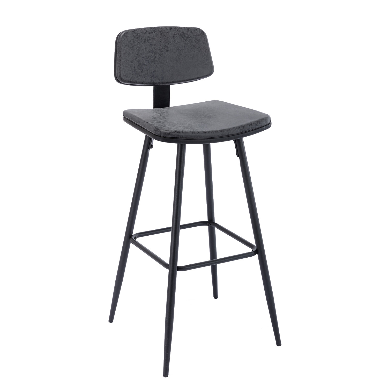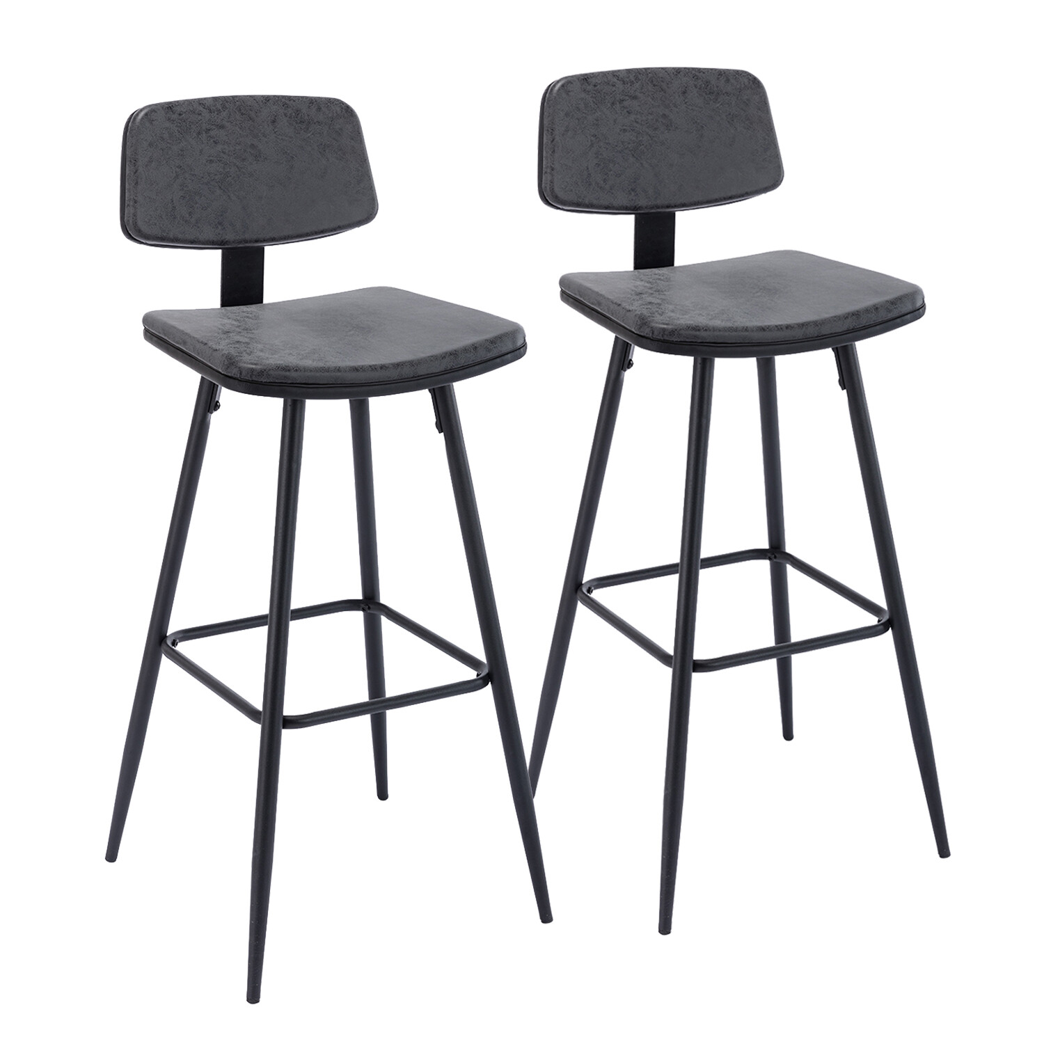 Set of 2 Bar Stools Tall Bar Chairs with PU Leather Backrest Kitchen Stools
