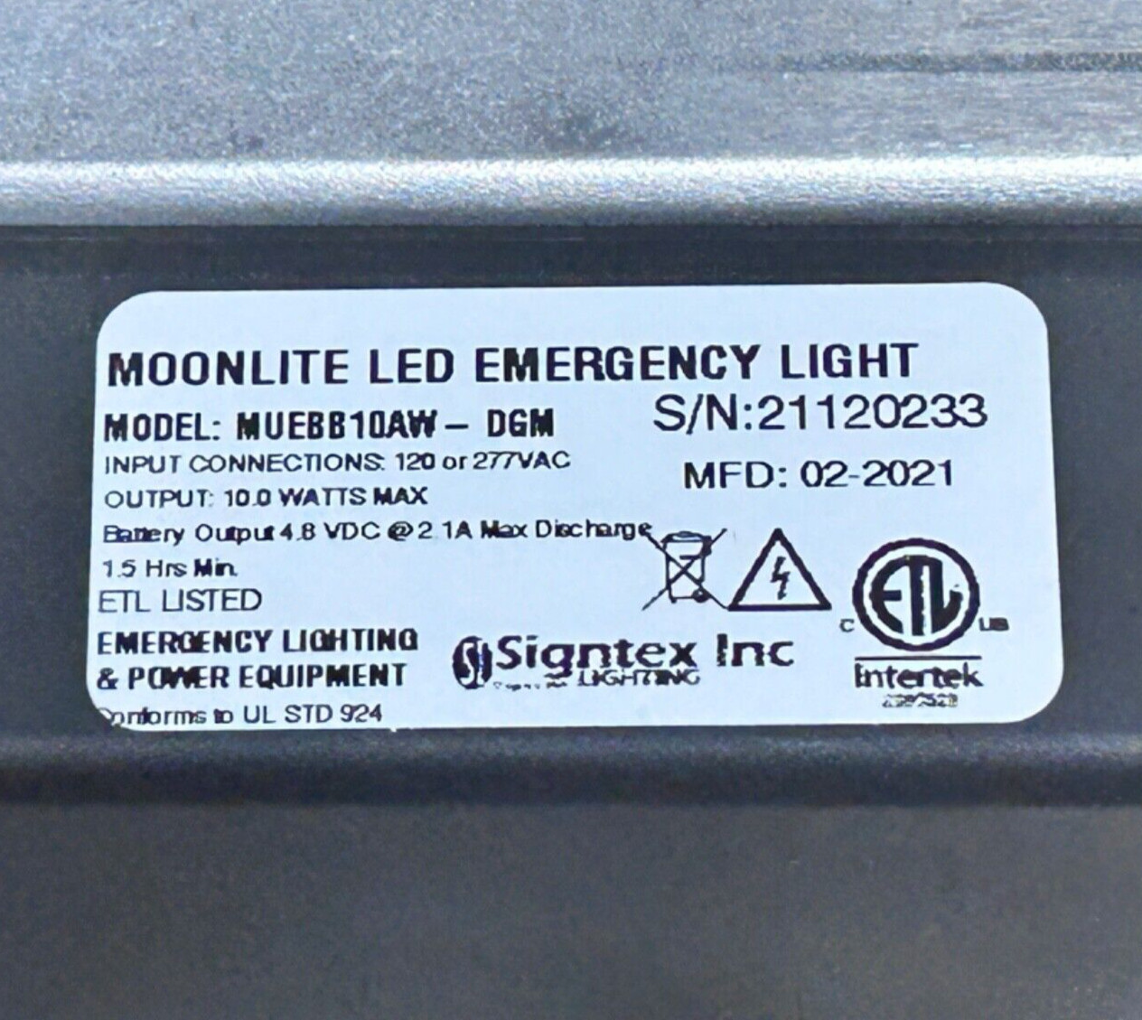 Signtex Battery Backup Moonlite LED Emergency Light MUEBB10BW-DGM 120/277VAC 10w
