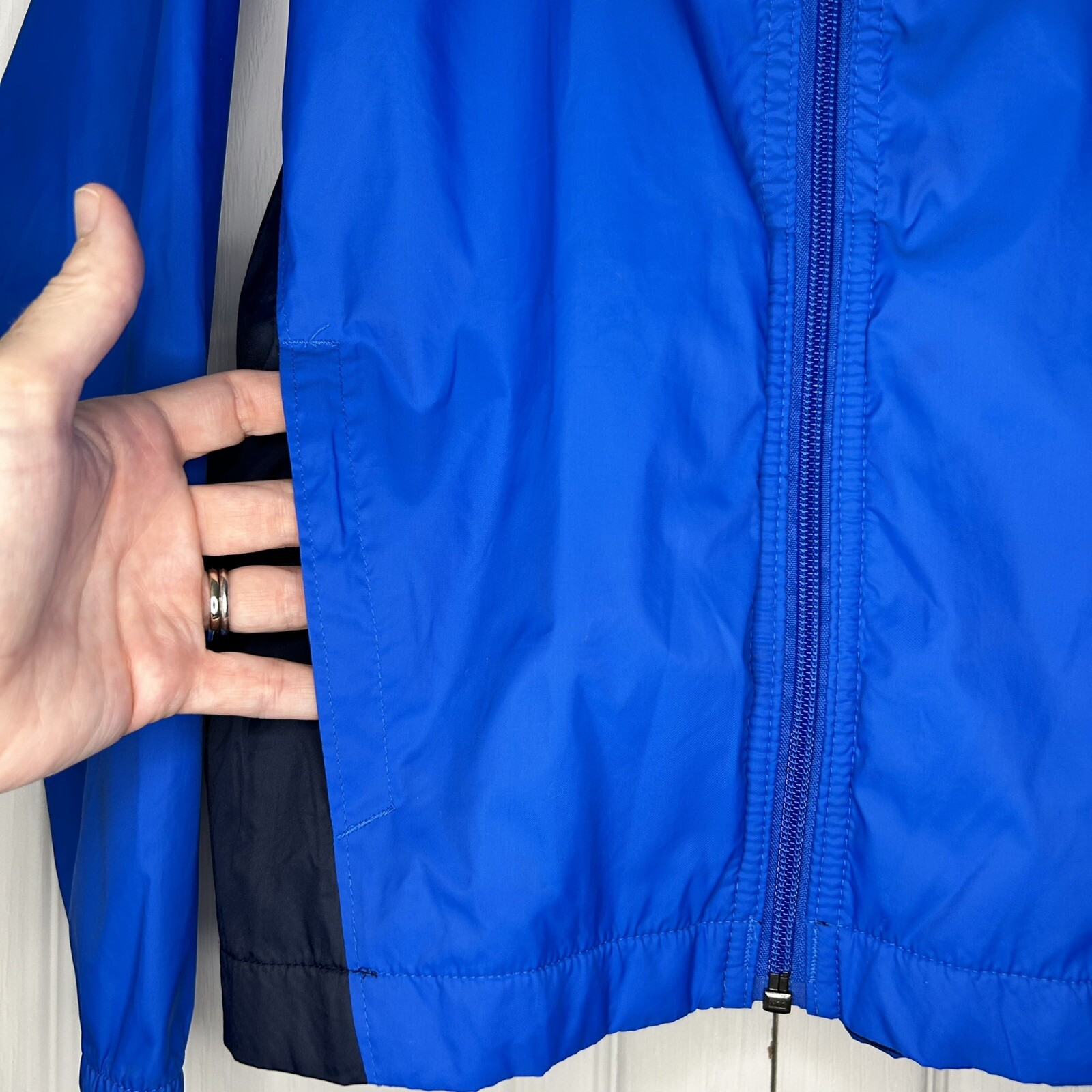 как выглядит Columbia Kids Blue Hooded Full Zip Windbreaker With Pockets Medium 10 12 фото