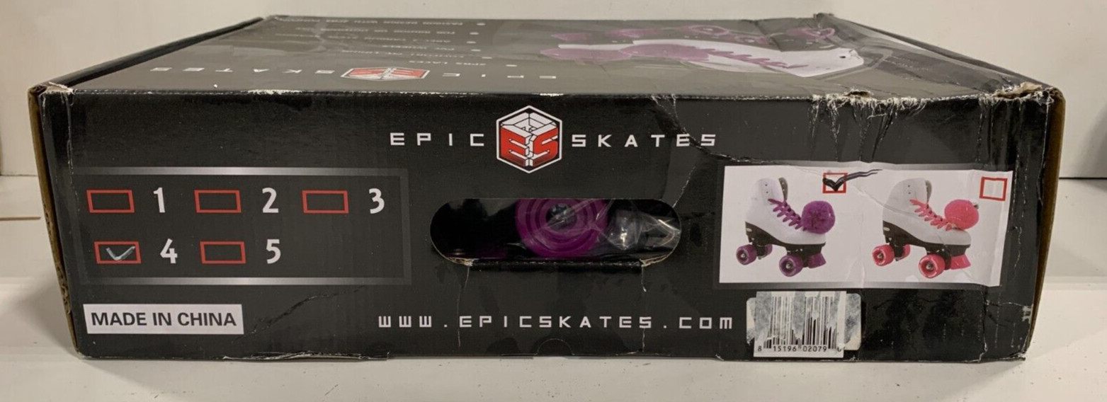 Epic Skates Princess Quad Roller Skates, White w/ Purple, Youth Size 4