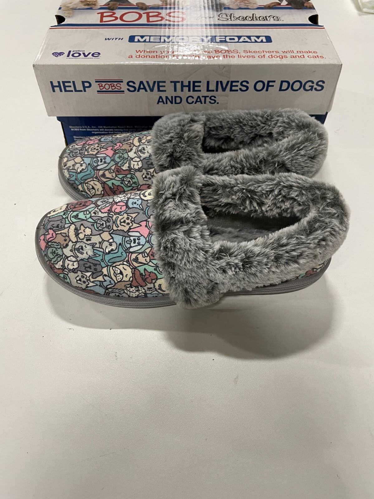 как выглядит WOMEN S SKECHERS "BOBS" TOO COZY POOCH PARADE HOUSE SLIPPERS фото