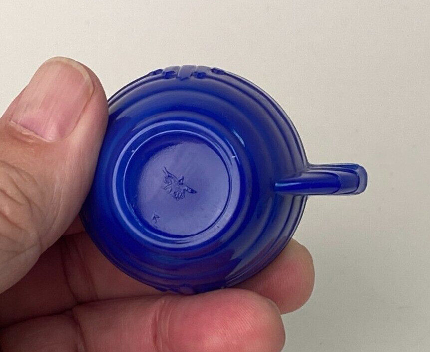 Akro Agate Tea Set Small Cobalt Blue Sugar Stacked Disc Interior Panel 1-1/4