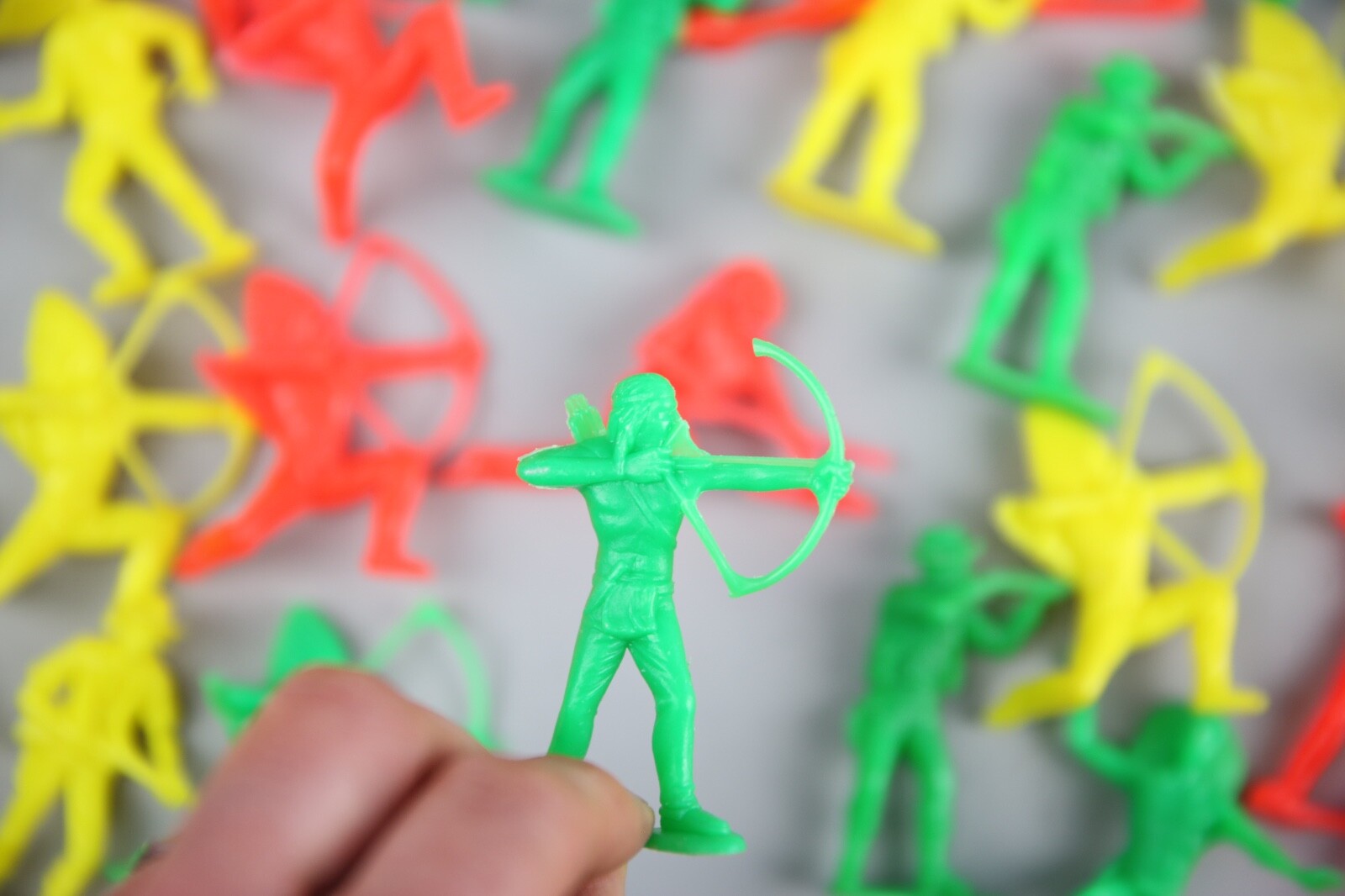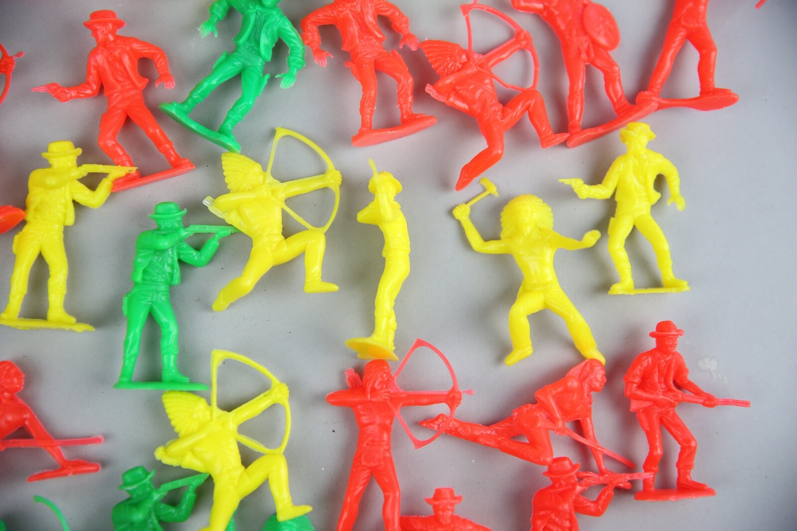 как выглядит Vintage Plastic Toy Cowboys Indians Figures for MARX or Tim Mee playset Lot 3" фото