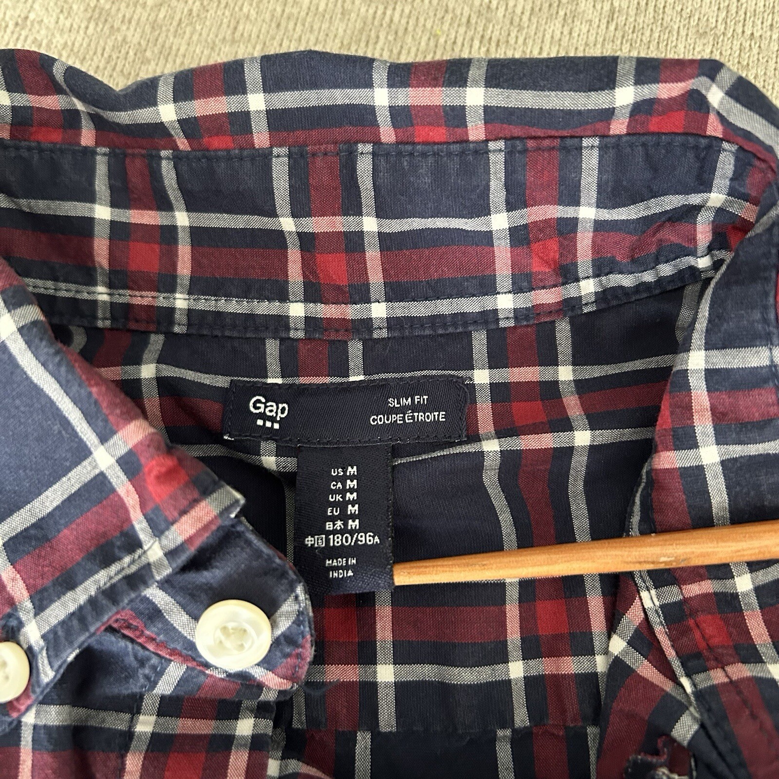 Gap Slim Fit Button Up Shirt Mens Medium Window Pane Check Red White Blue Preppy