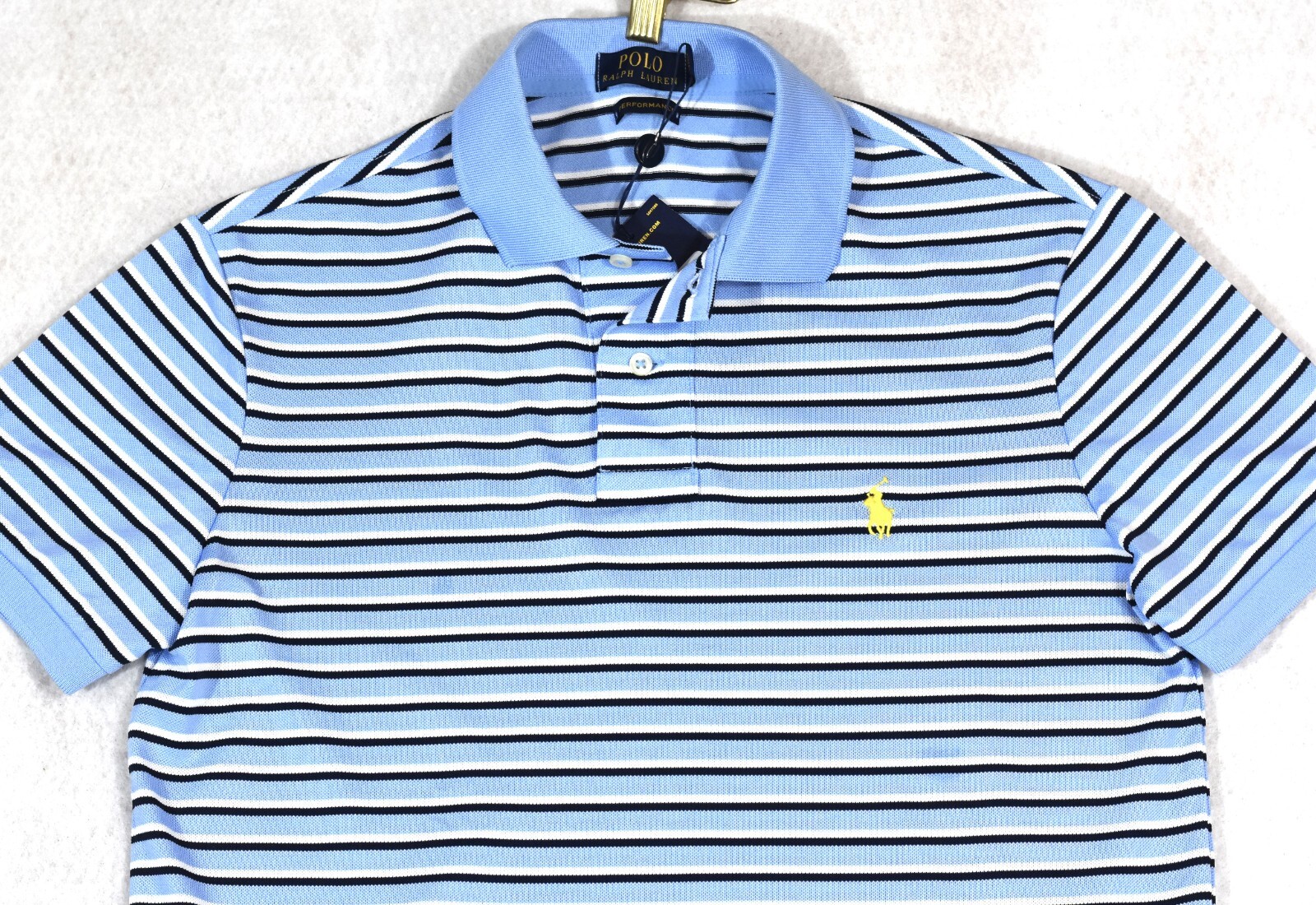 как выглядит Polo Ralph Lauren Shirt Stretch Performance Blue Striped S NWT 95 фото