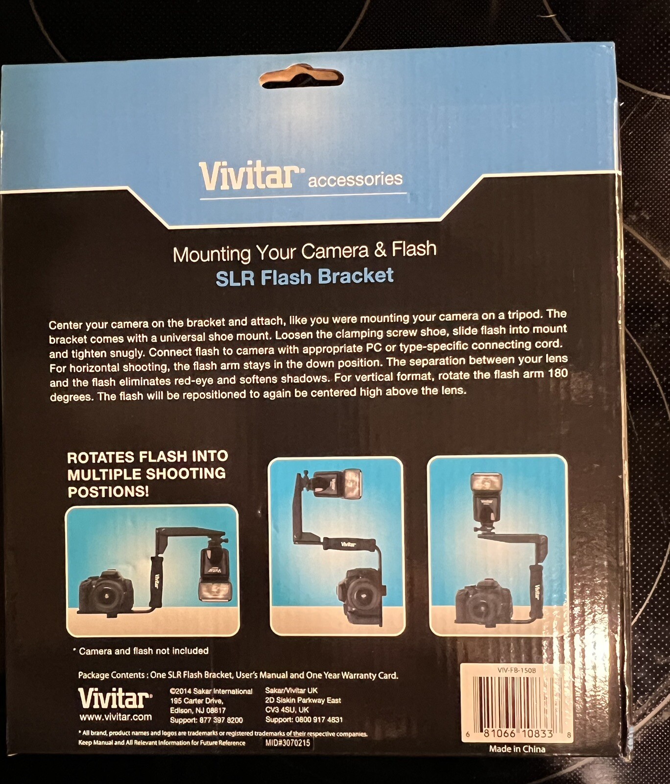 New Vivitar FB-150B SLR/DSLR Horizontal Vertical Flash Bracket NIB