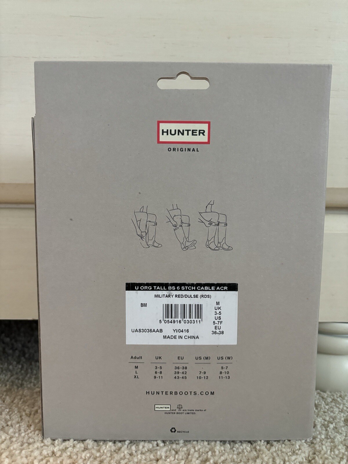 Hunter Original Womens TALL Fleece Boot Socks Military Red Size M 5-7 New