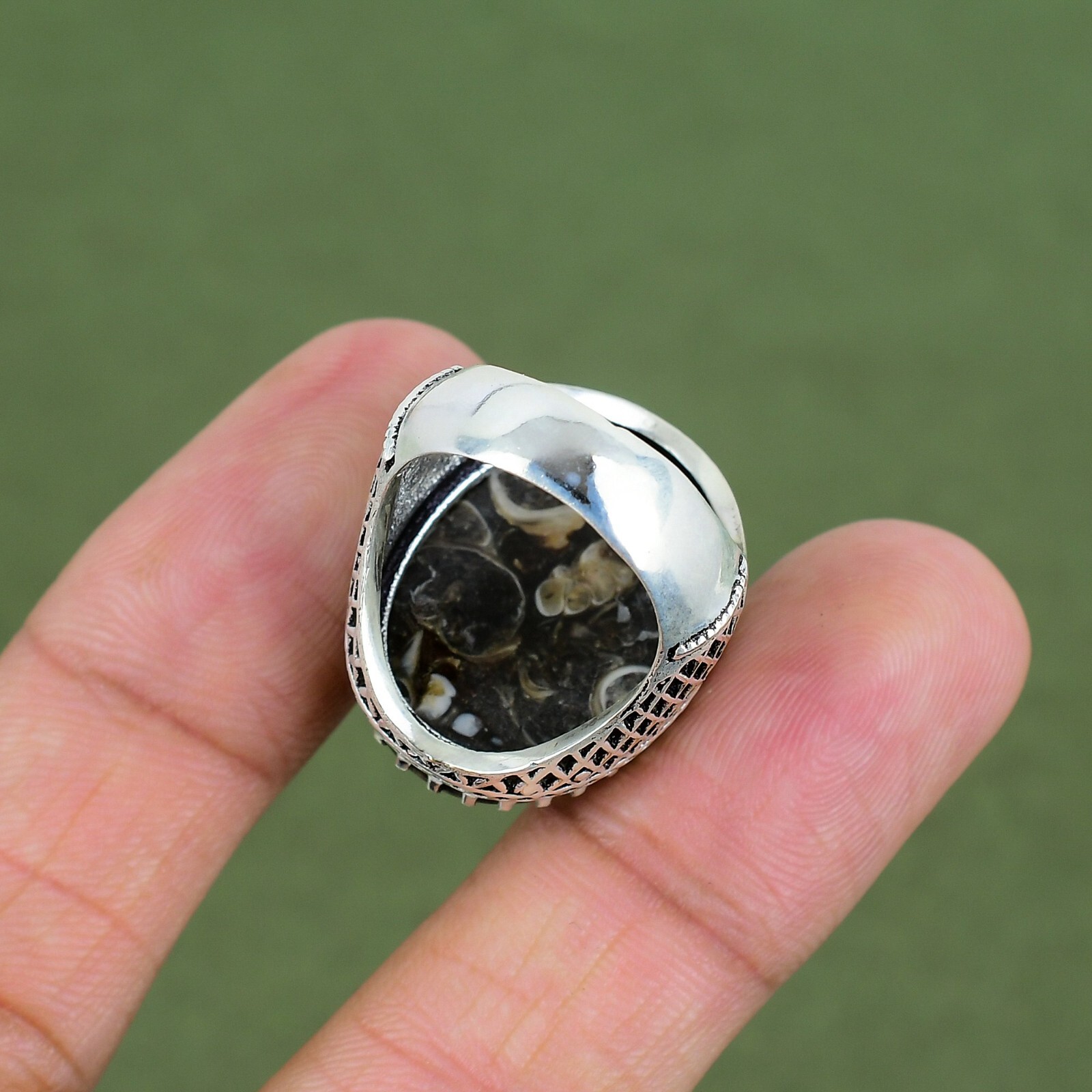 Certification: 100% Genuine Natural Turritella Agate Ring