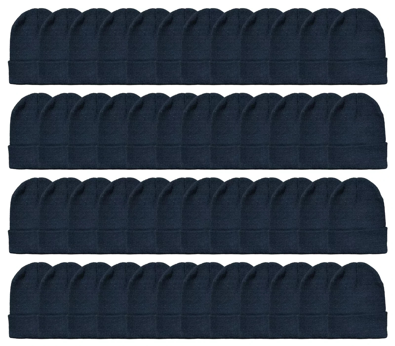 48 Pack Men Women Solid Black Warm Winter Beanies Bulk Cold Weather Knit Cap Lot