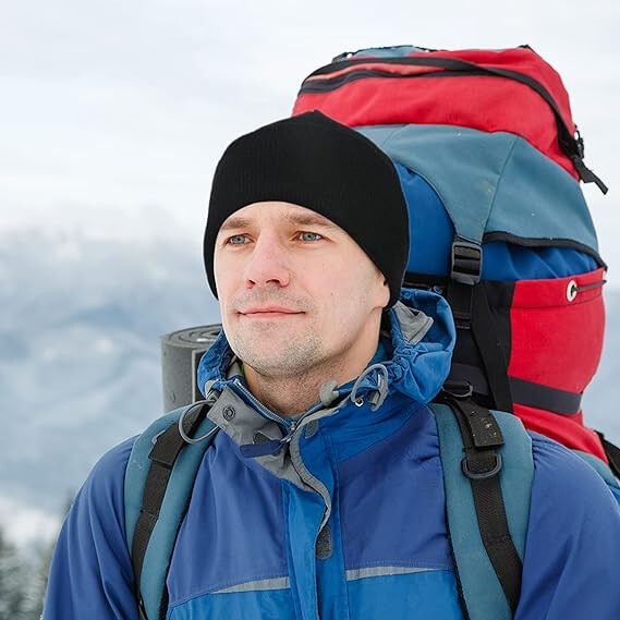 как выглядит 48 Pack Men Women Solid Black Warm Winter Beanies Bulk Cold Weather Knit Cap Lot фото