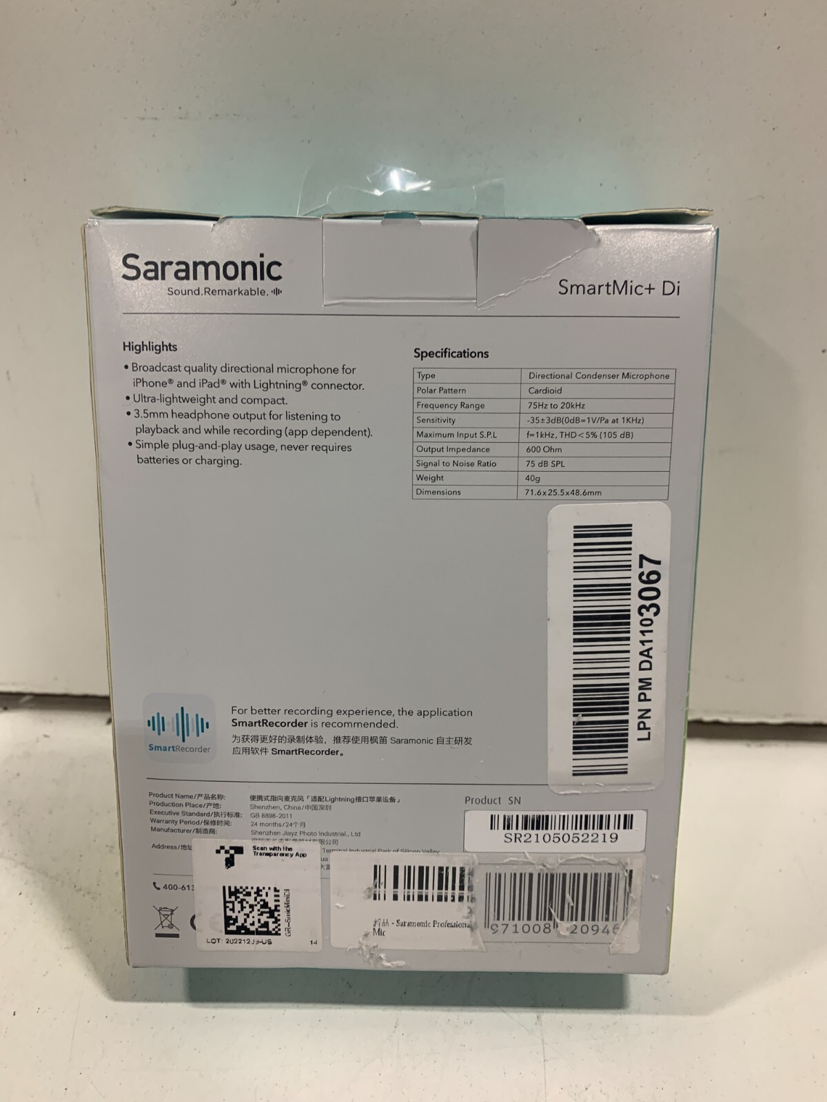 Saramonic SmartMic Di Mini Directional Mic W/ Lightning Plug 4 iOS Mobile Device