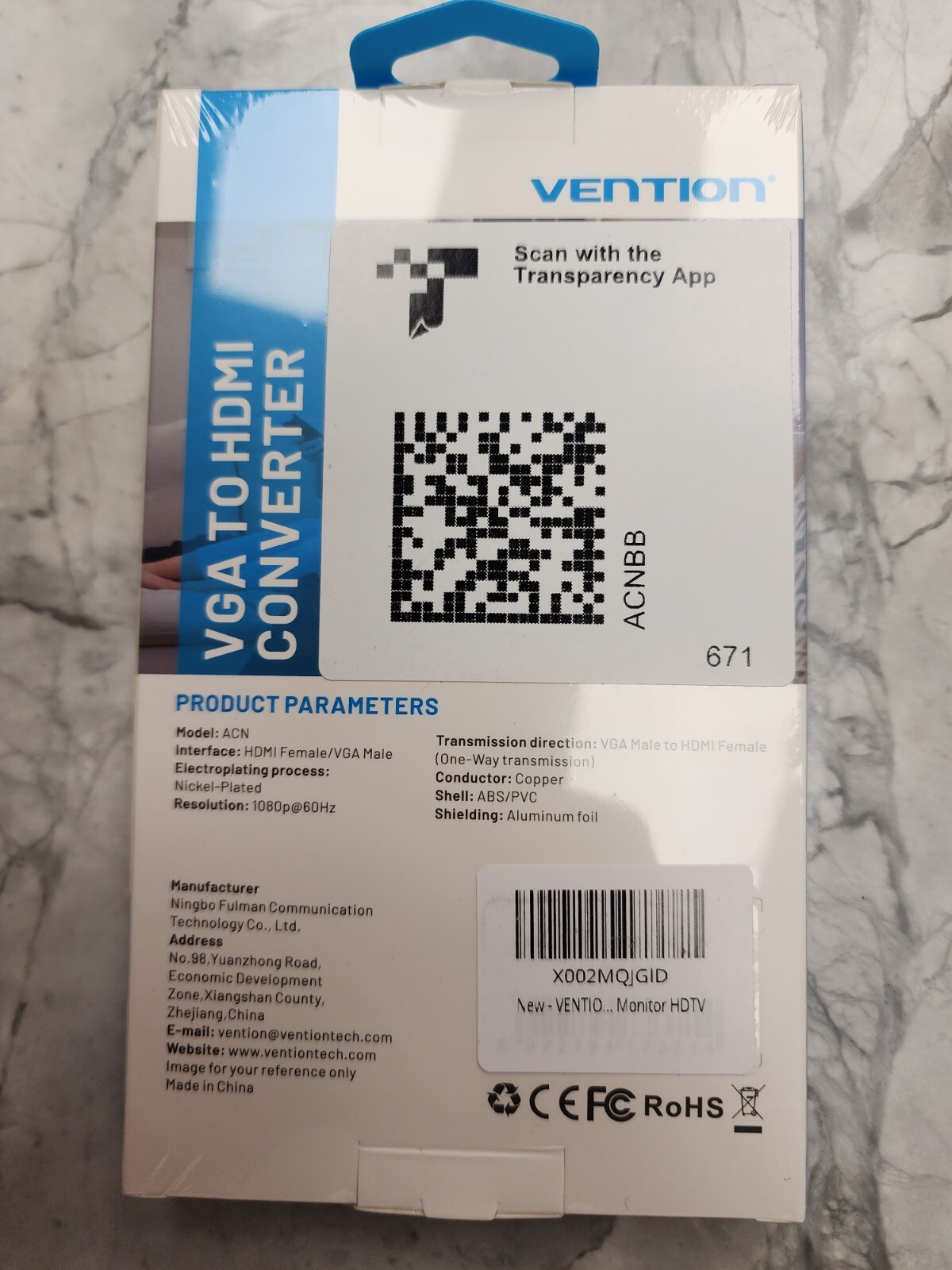 Vention ACN Male VGA to Female HDMI 1080p 60Hz ABS/PVC One Way Converter
