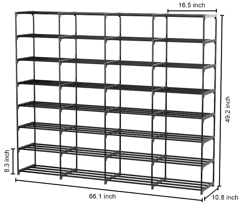 Metal Shoe Rack Large Capacity 4 Rows 8 Tier 56-64 Pairs MISSING 2 SHORT RODS