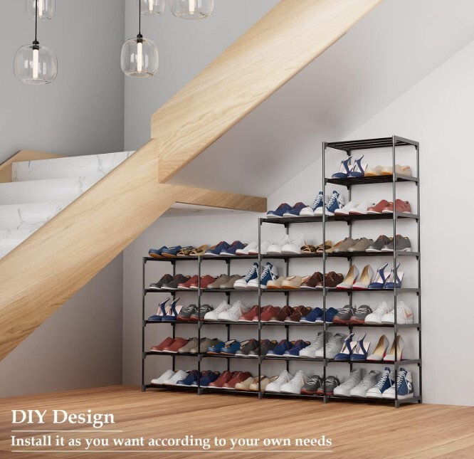 как выглядит Metal Shoe Rack Large Capacity 4 Rows 8 Tier 56-64 Pairs MISSING 2 SHORT RODS фото