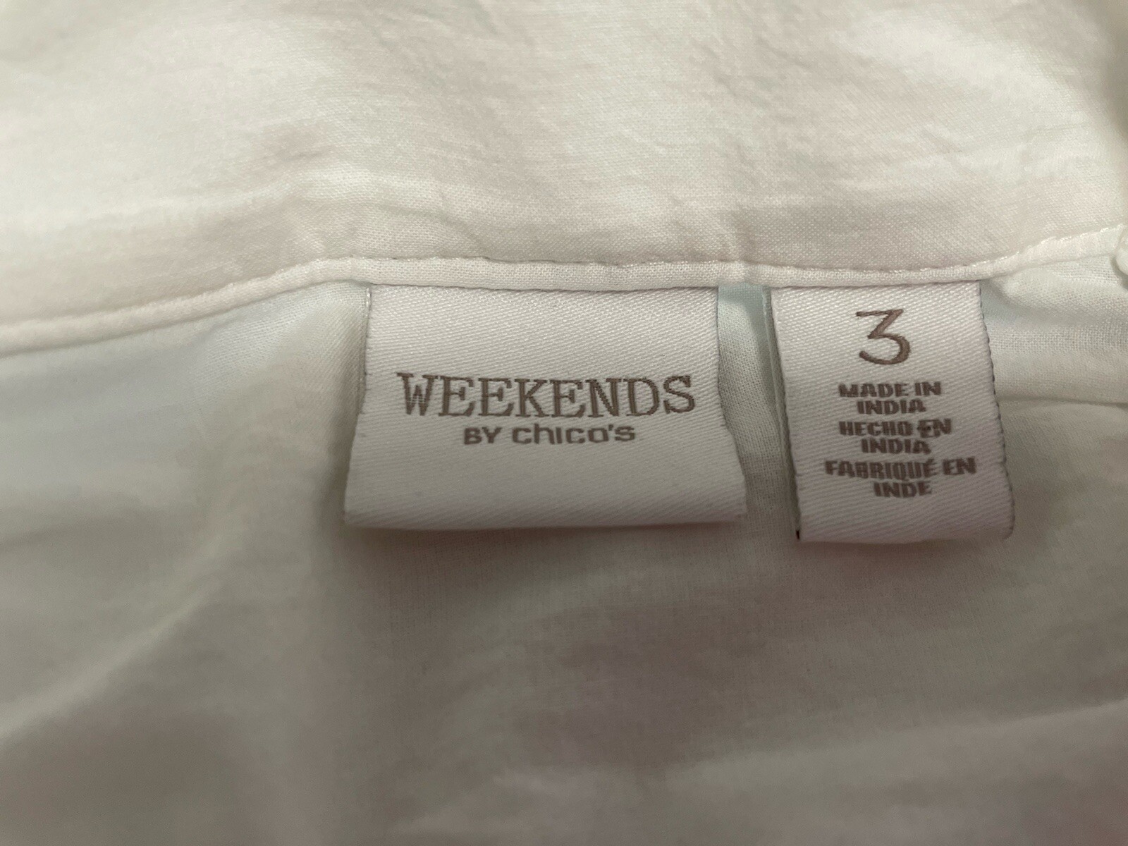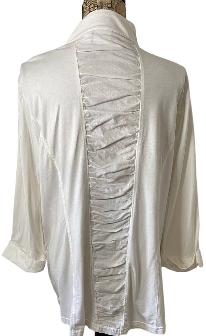 как выглядит Weekends By Chicos White Zip Front Ruched Back 3/4 Sleeve Jacket Chicos 3 фото