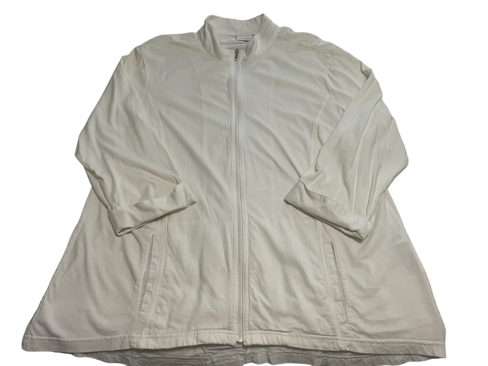 Weekends By Chico's White Zip Front Ruched Back 3/4 Sleeve Jacket Chico's 3