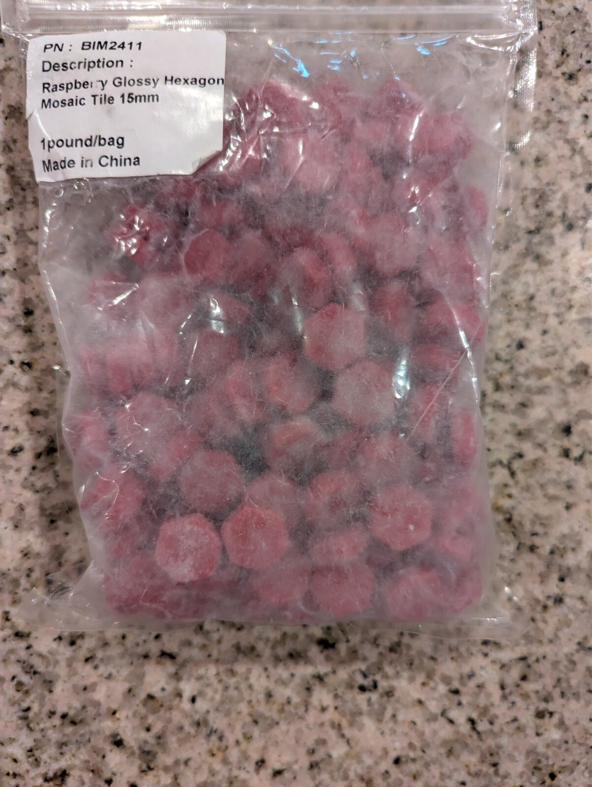 как выглядит Mosaic Tiles for Crafts Raspberry Glossy Hexagon Mosaic Tile 15mm BIM2411 1LB фото