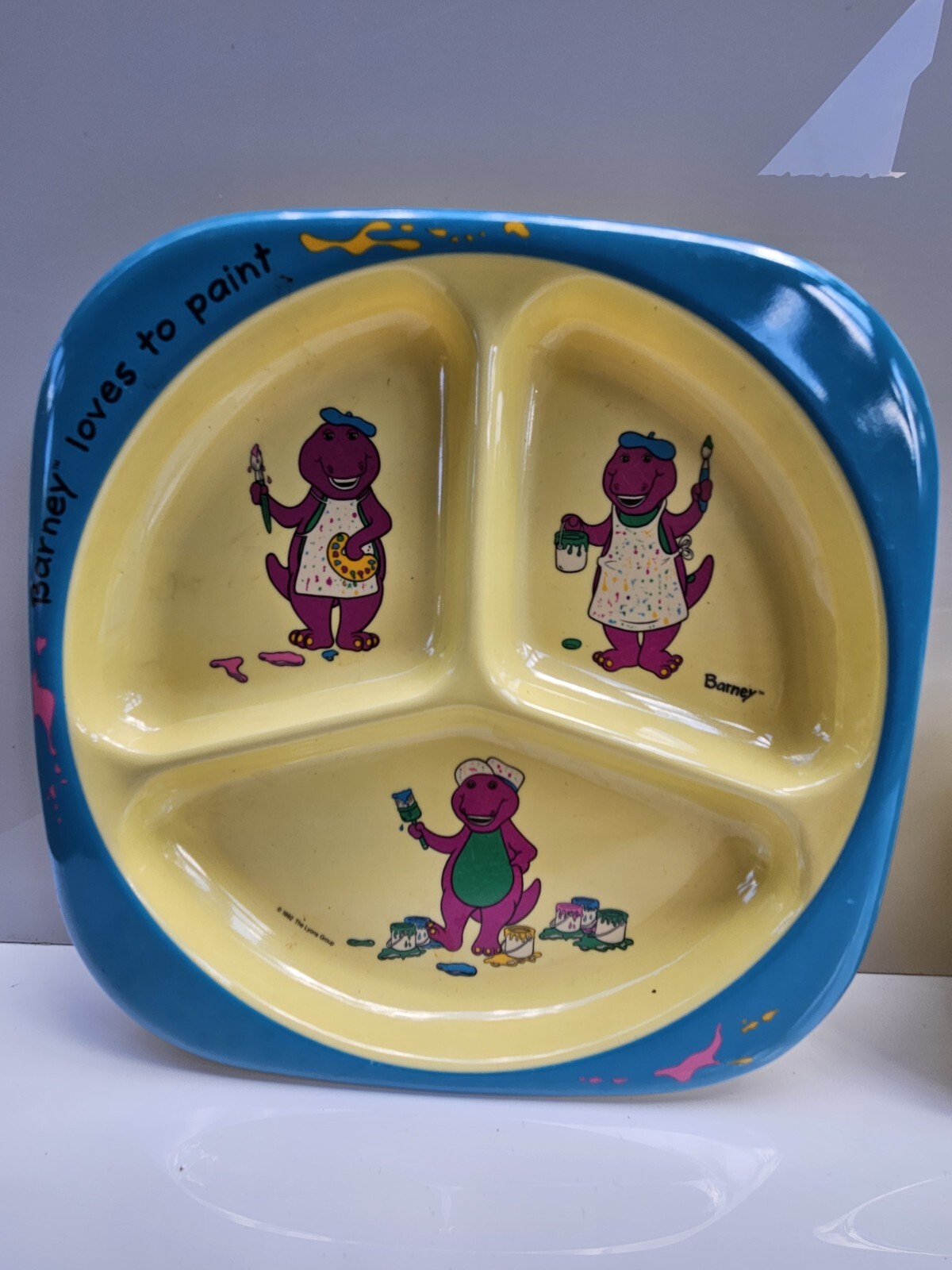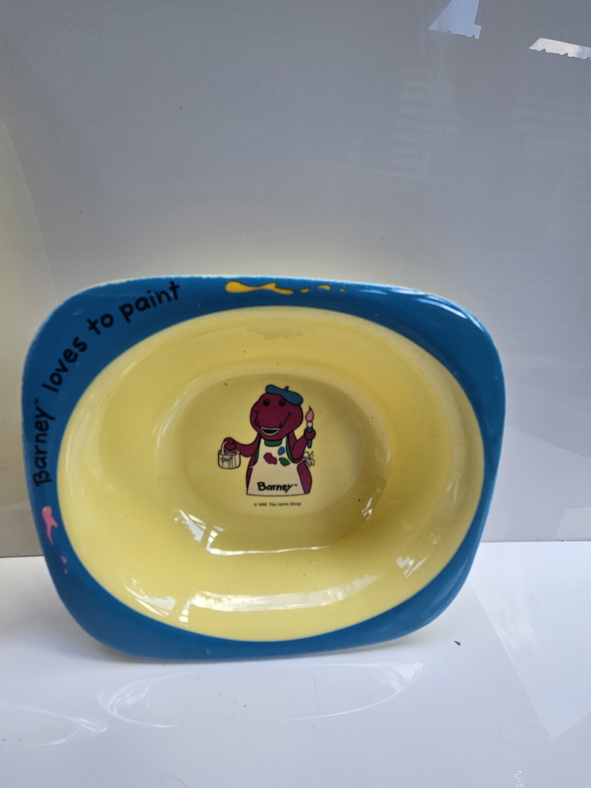 как выглядит Vintage 1992 Barney Loves to Paint Child Plate And Bowl Set - The Lyons Group фото