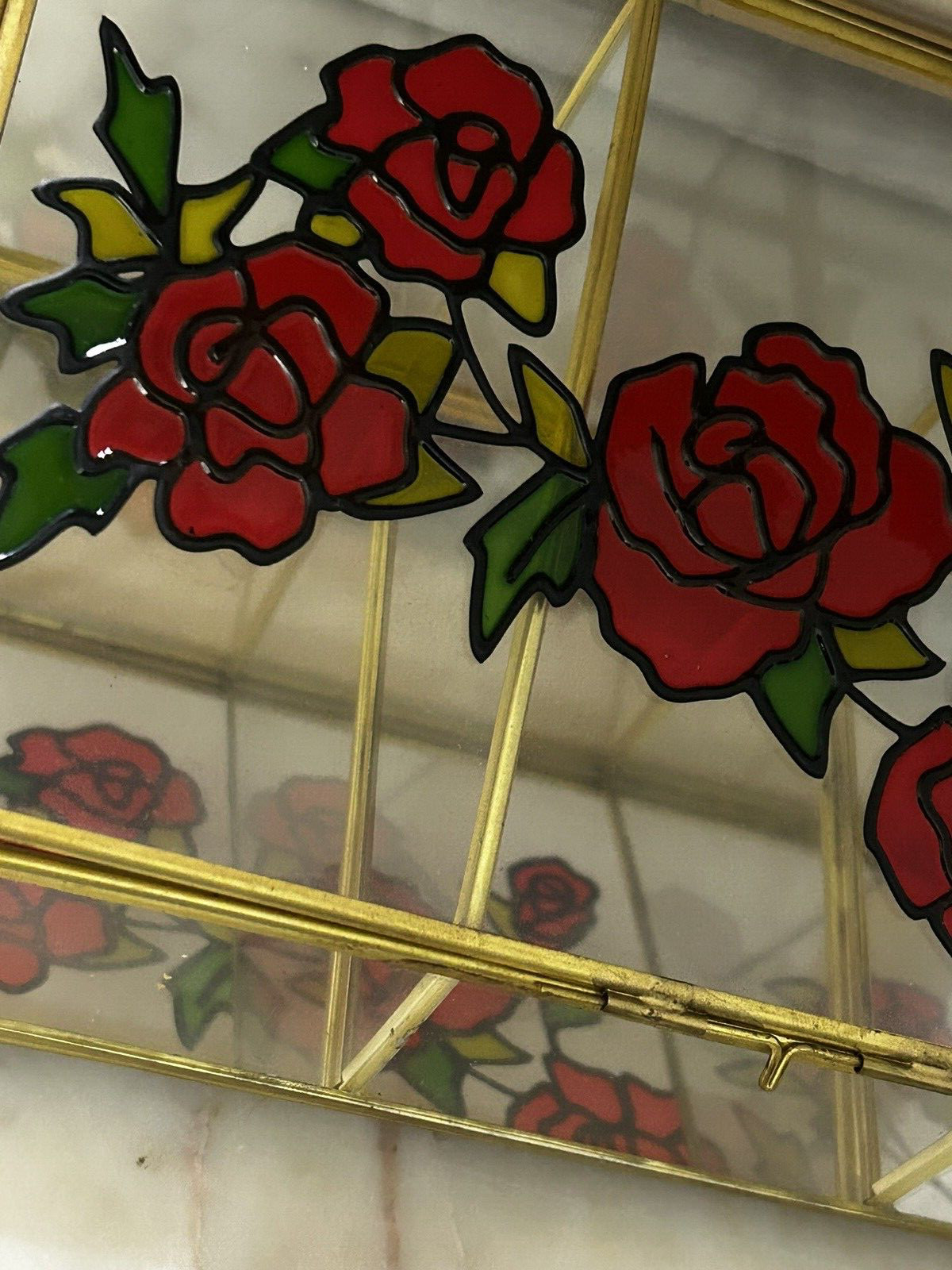 Особенности: 3 compartment, Hinged Lid, mirrored compartment, stained glass, vintage