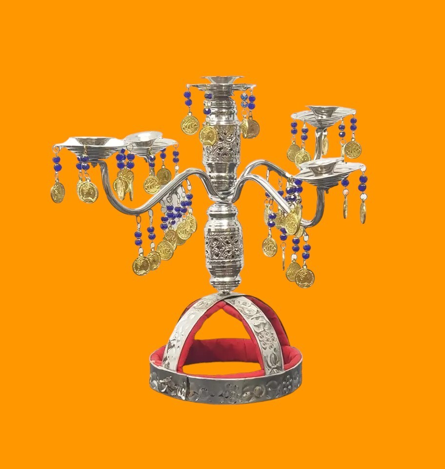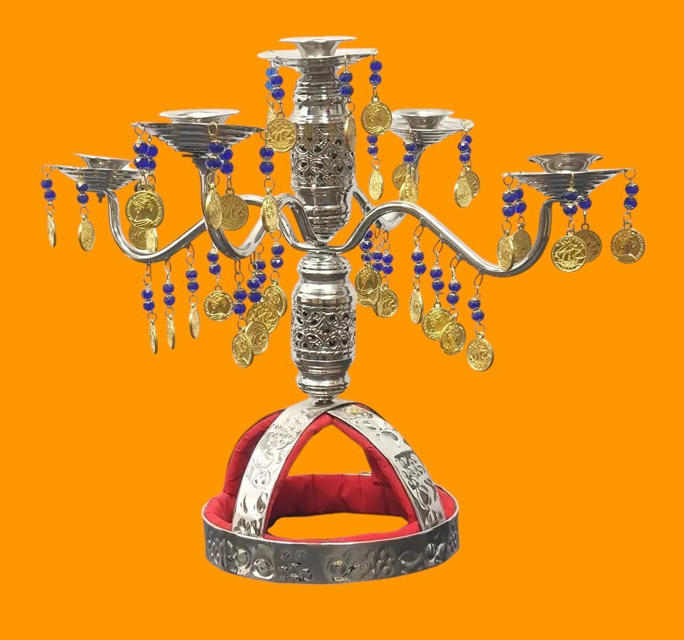 Candelabra Shemadan 5 Candles Handmade Egyptian candlesticks Brass Silver 71687
