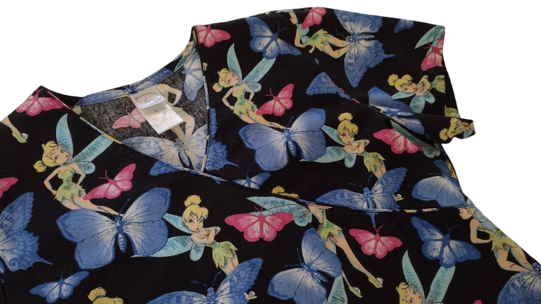 Disney Tinkerbell Print V Neck Faux Wrap Scrub Top Size M