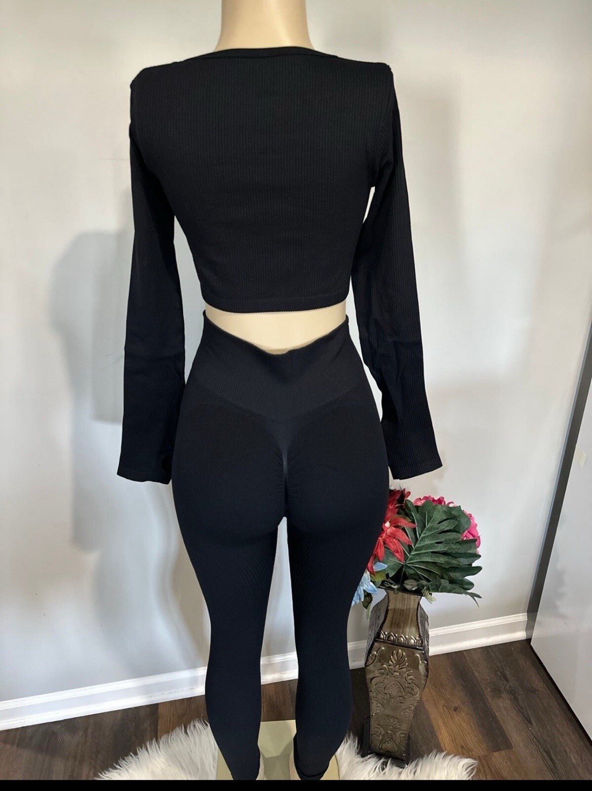 Workout Set Size large Women s 2 Piece Set High Waist Leggings and Top Black