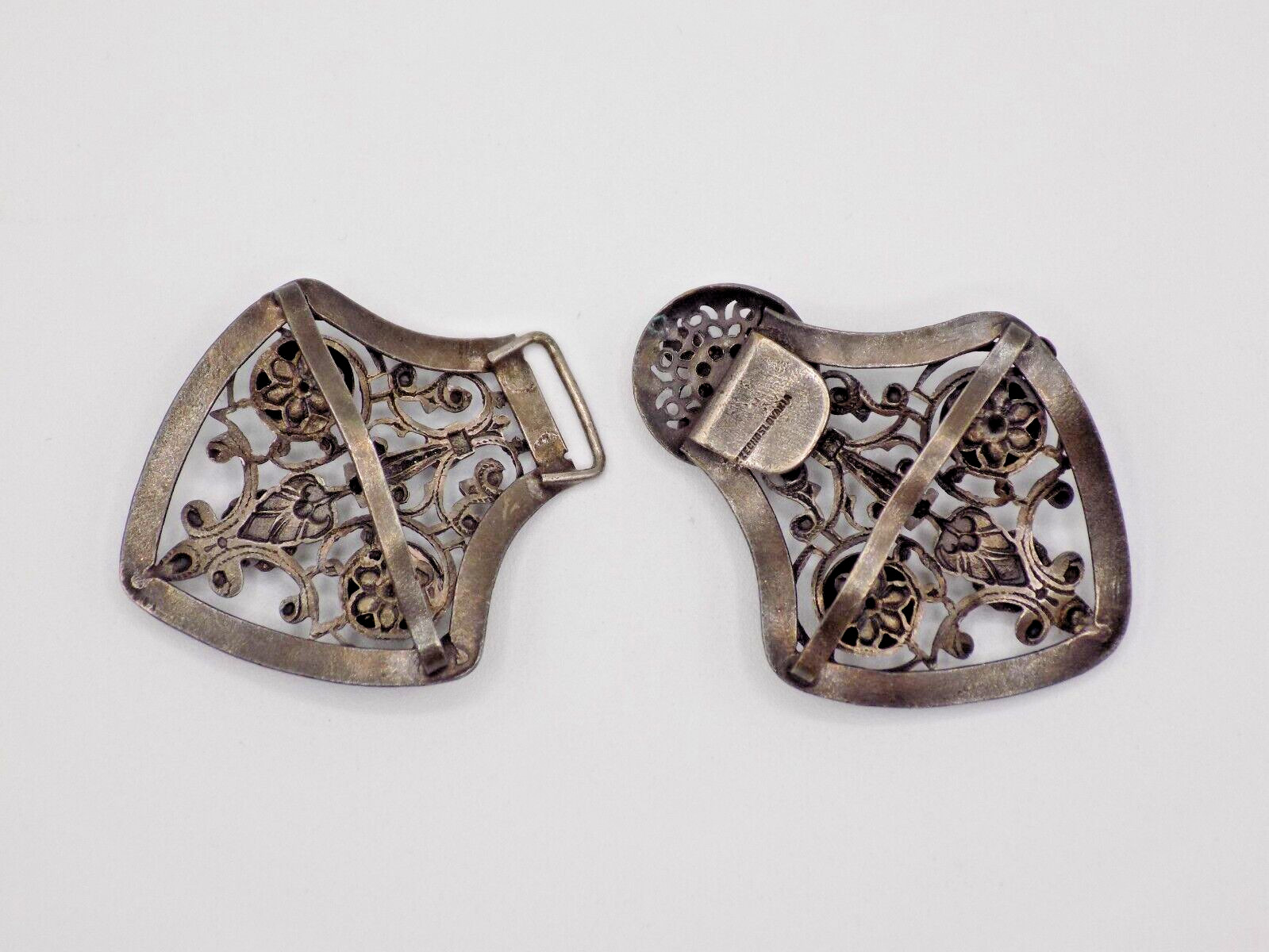 как выглядит Vintage Rhinestone Filigree Belt Sash Buckle 2 Piece Czechoslovakia фото
