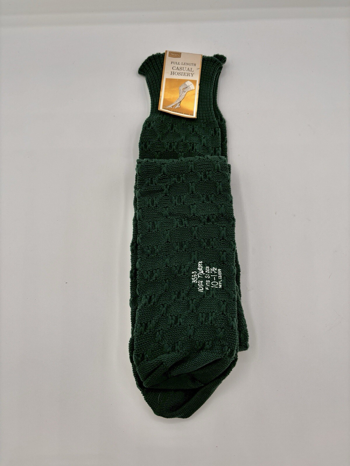 Vintage 60's Sears Roebucks Knee High Socks Green Casual Hosiery Full Length