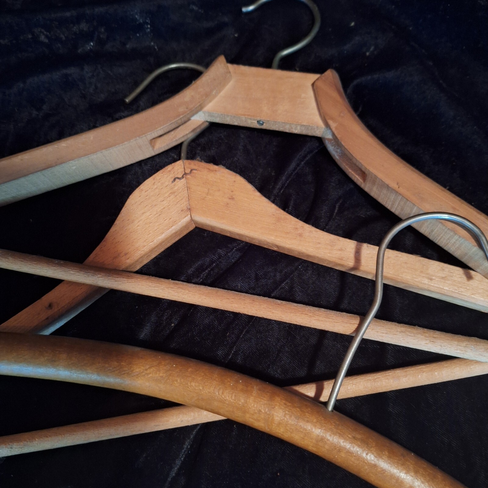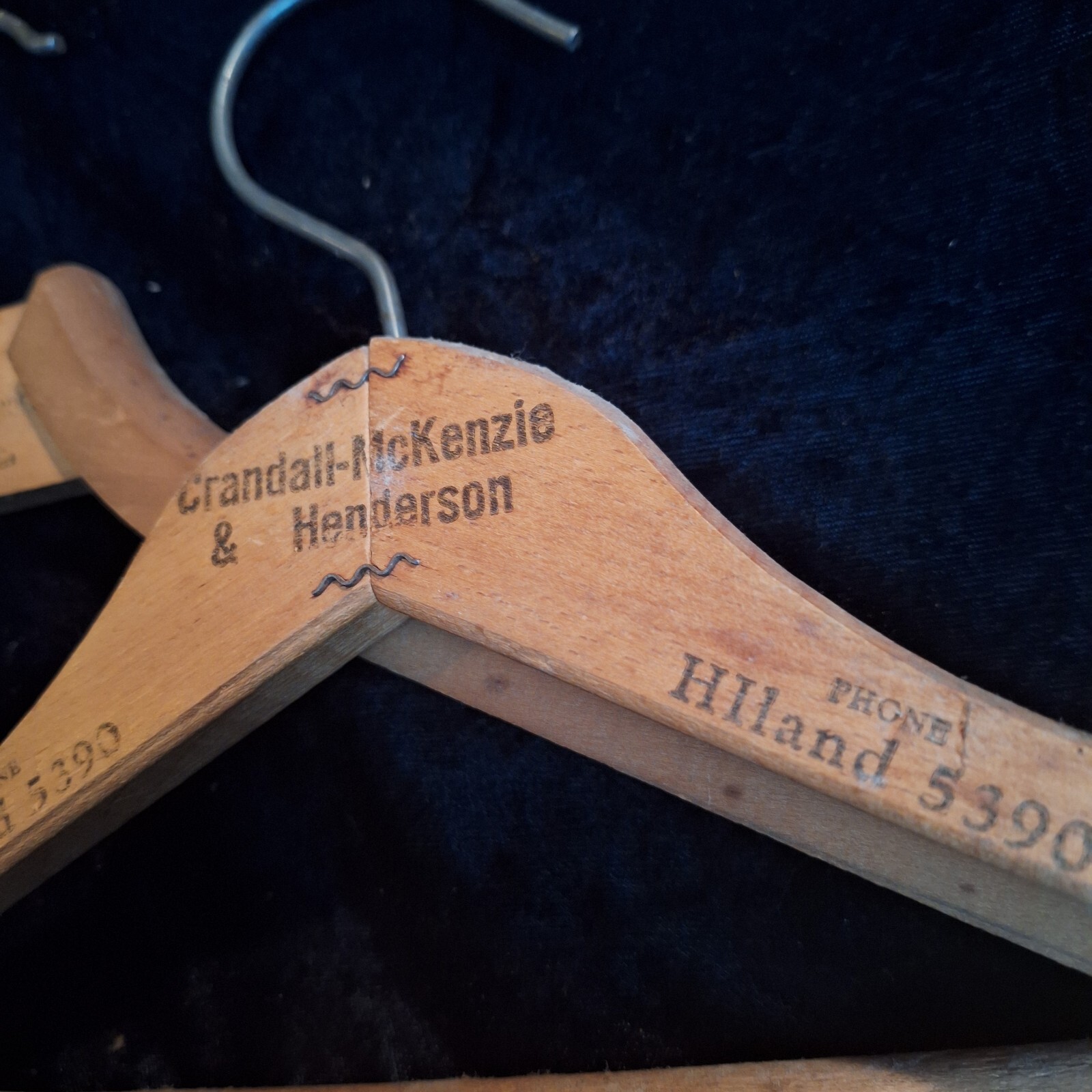 Wooden Coat Hangers - Lot of 3 with Advertisements - Antique Vintage