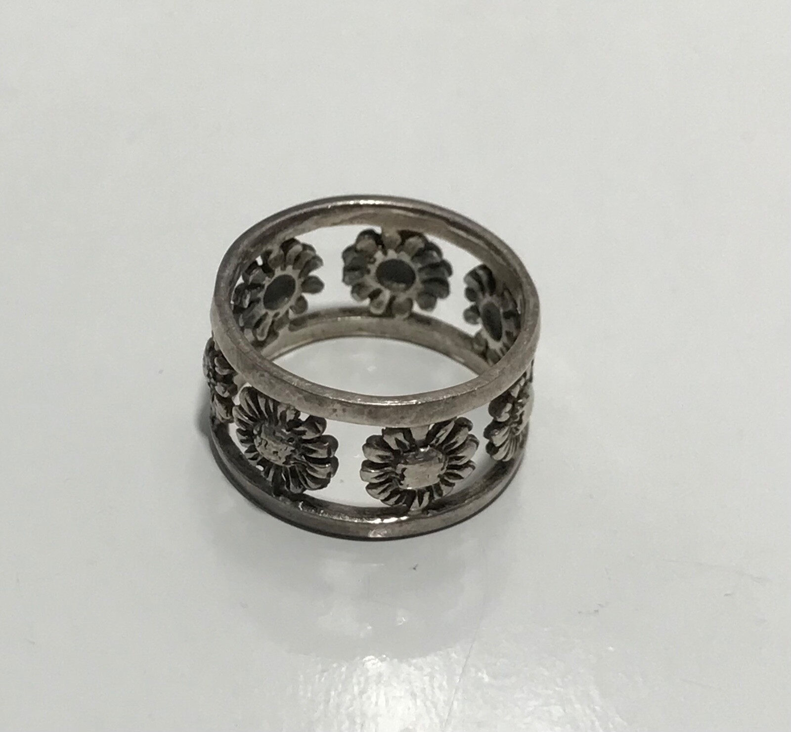 Vintage Sterling Silver 925 Open Sunflower 10.5mm Wide Band Ring Size 6