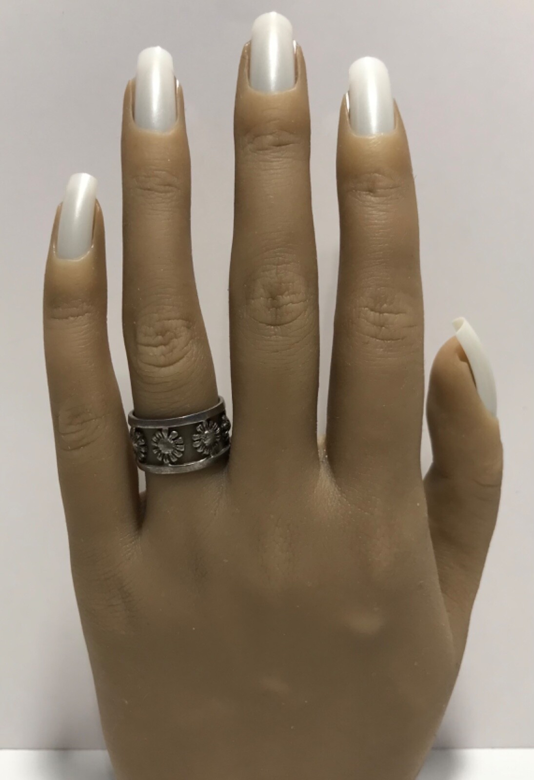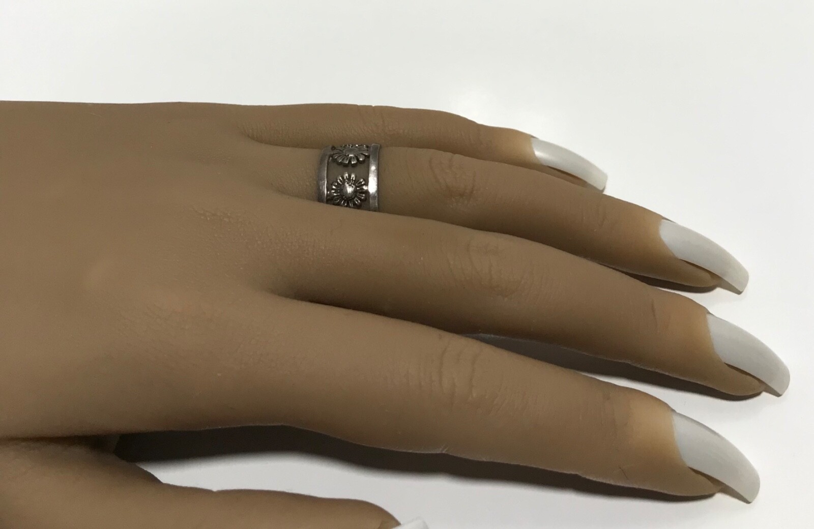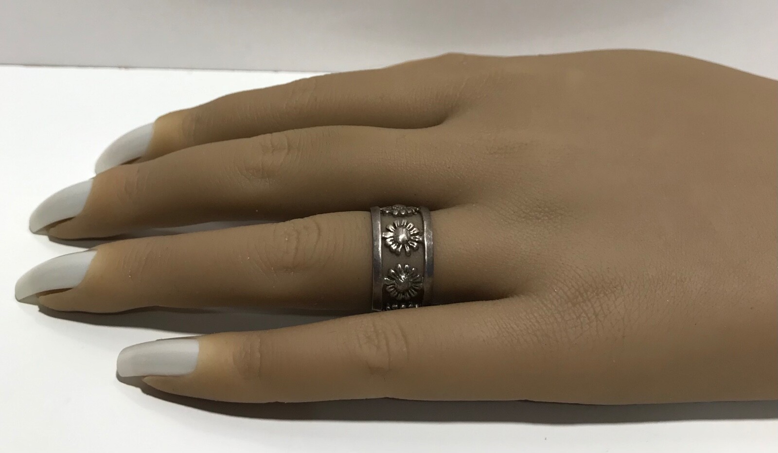 как выглядит Vintage Sterling Silver 925 Open Sunflower 10.5mm Wide Band Ring Size 6 фото